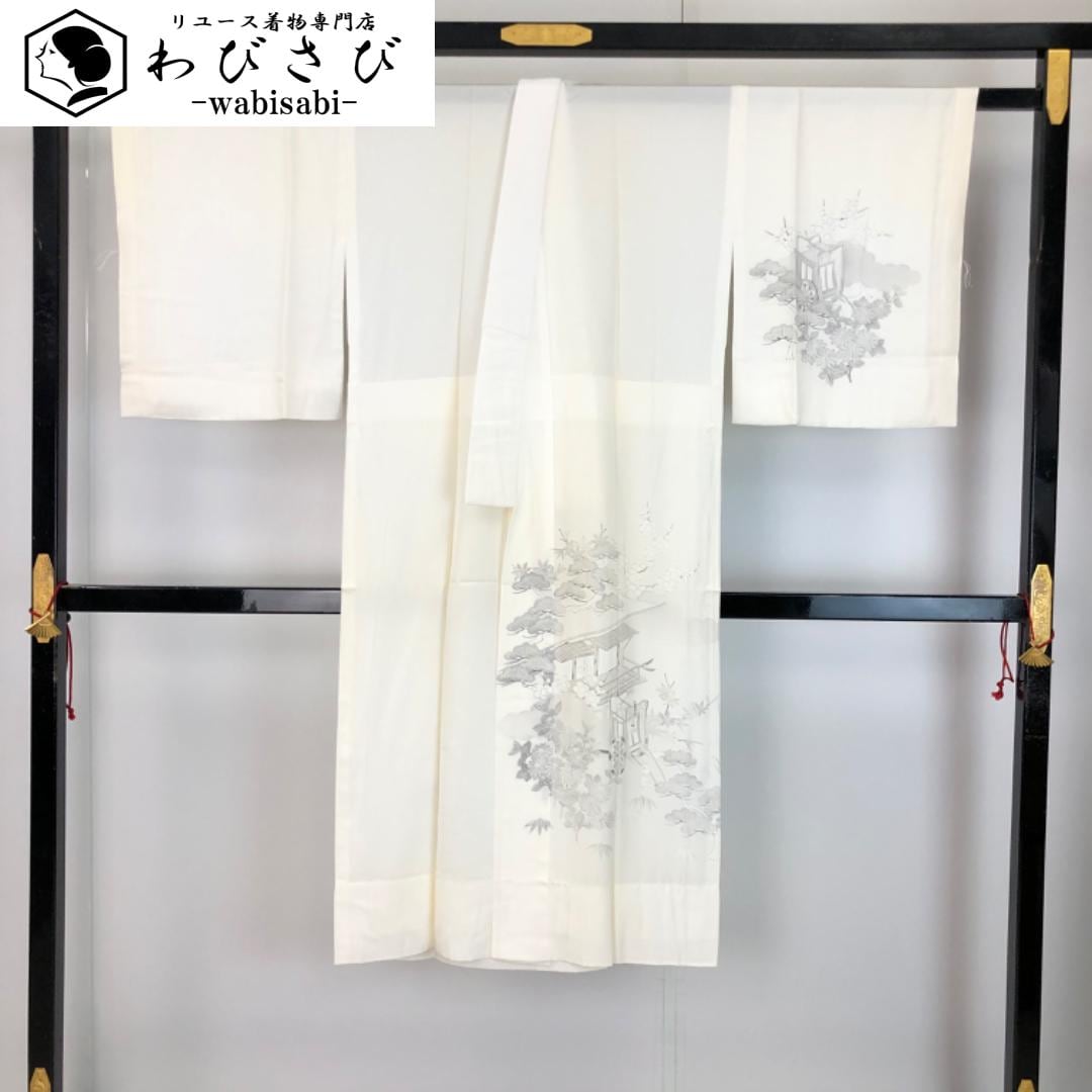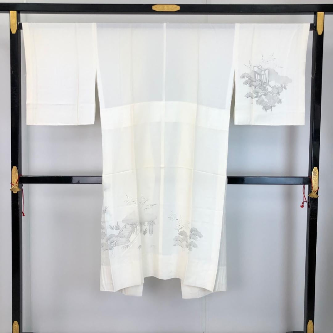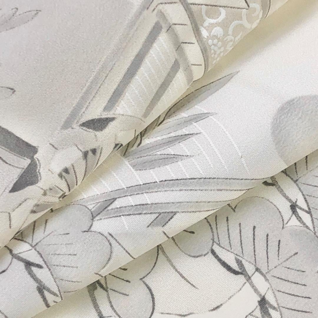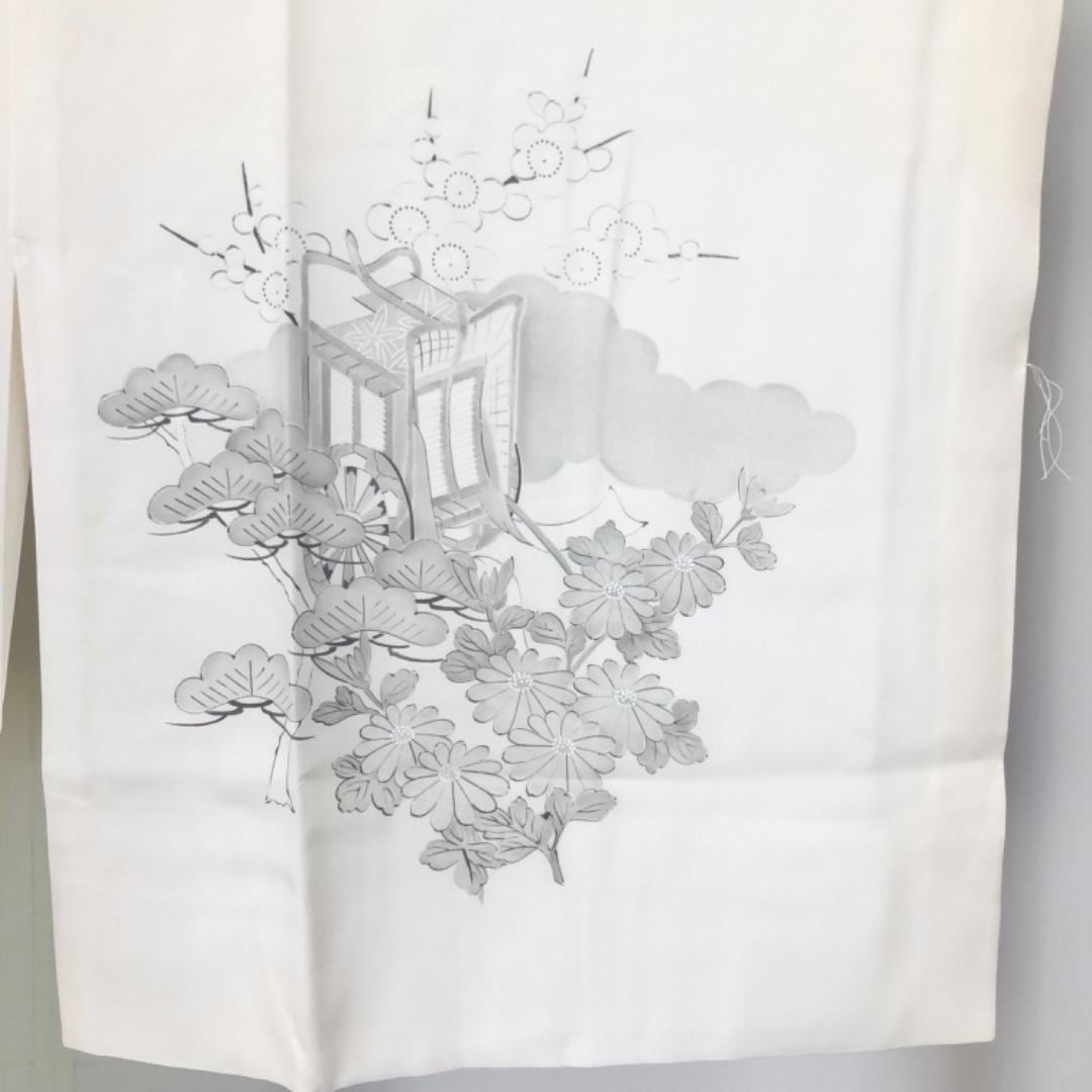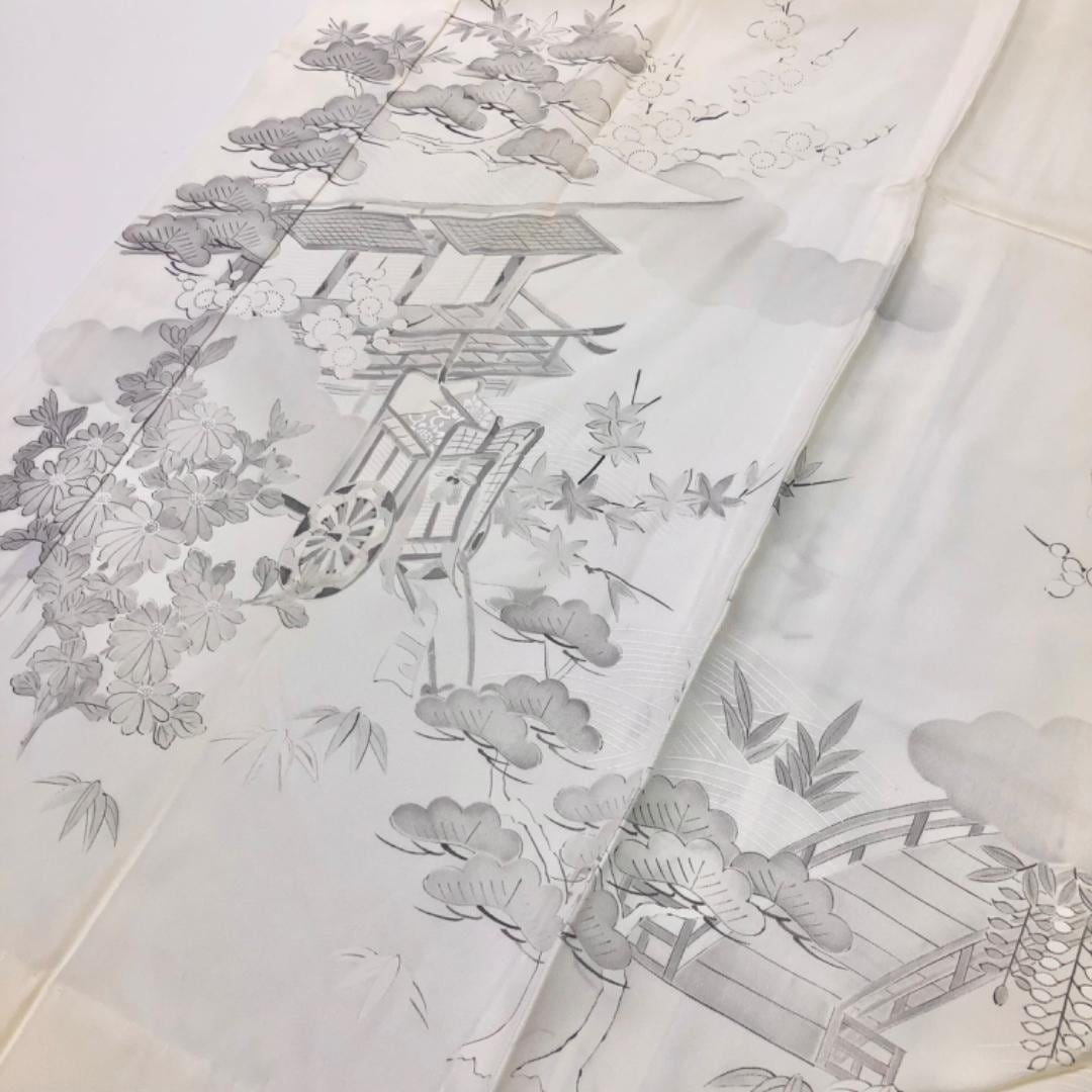 乳白色のお色味に御所車、風景模様がデザインされた素敵なお品でございます。