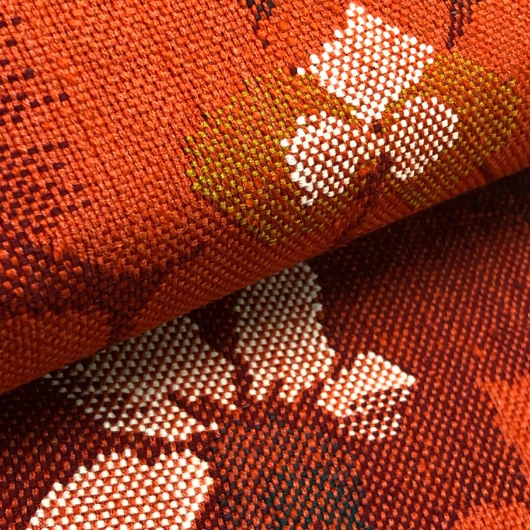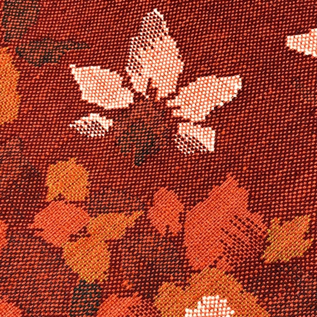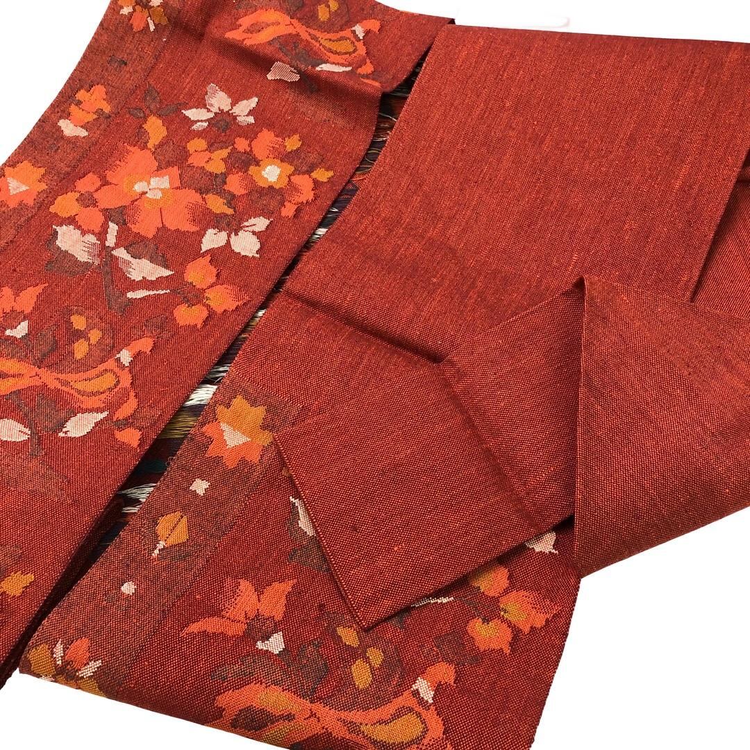 名古屋帯 真綿紬 花模様 猩々茶色 O-6019 着物 きもの kimono 和服 和装 中古 リサイクル着物 【送料無料】