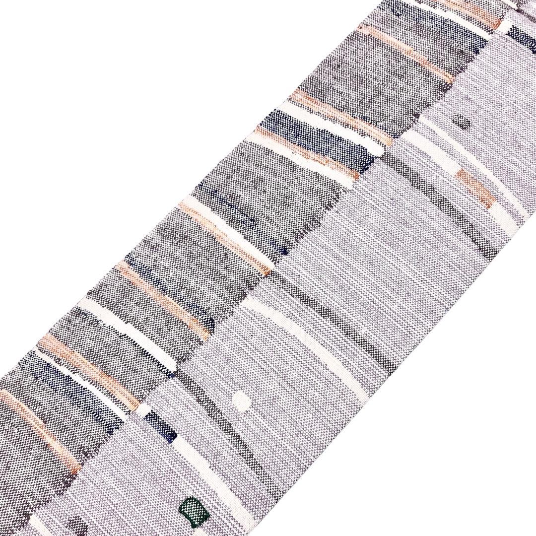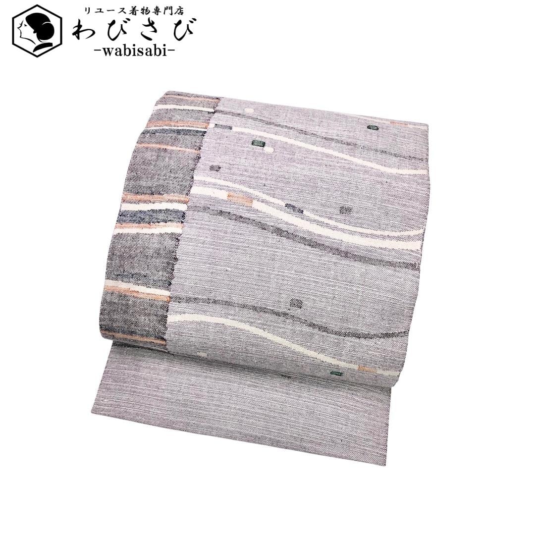 名古屋帯 真綿紬 抽象曲線模様 小町鼠色 O-6015 着物 きもの kimono 和服 和装 中古 リサイクル着物 【送料無料】