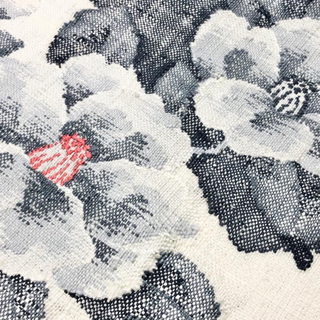 名古屋帯 真綿紬 美しい椿の花模様 乳白色 O-6020 着物 きもの kimono 和服 和装 中古 リサイクル着物 【送料無料】