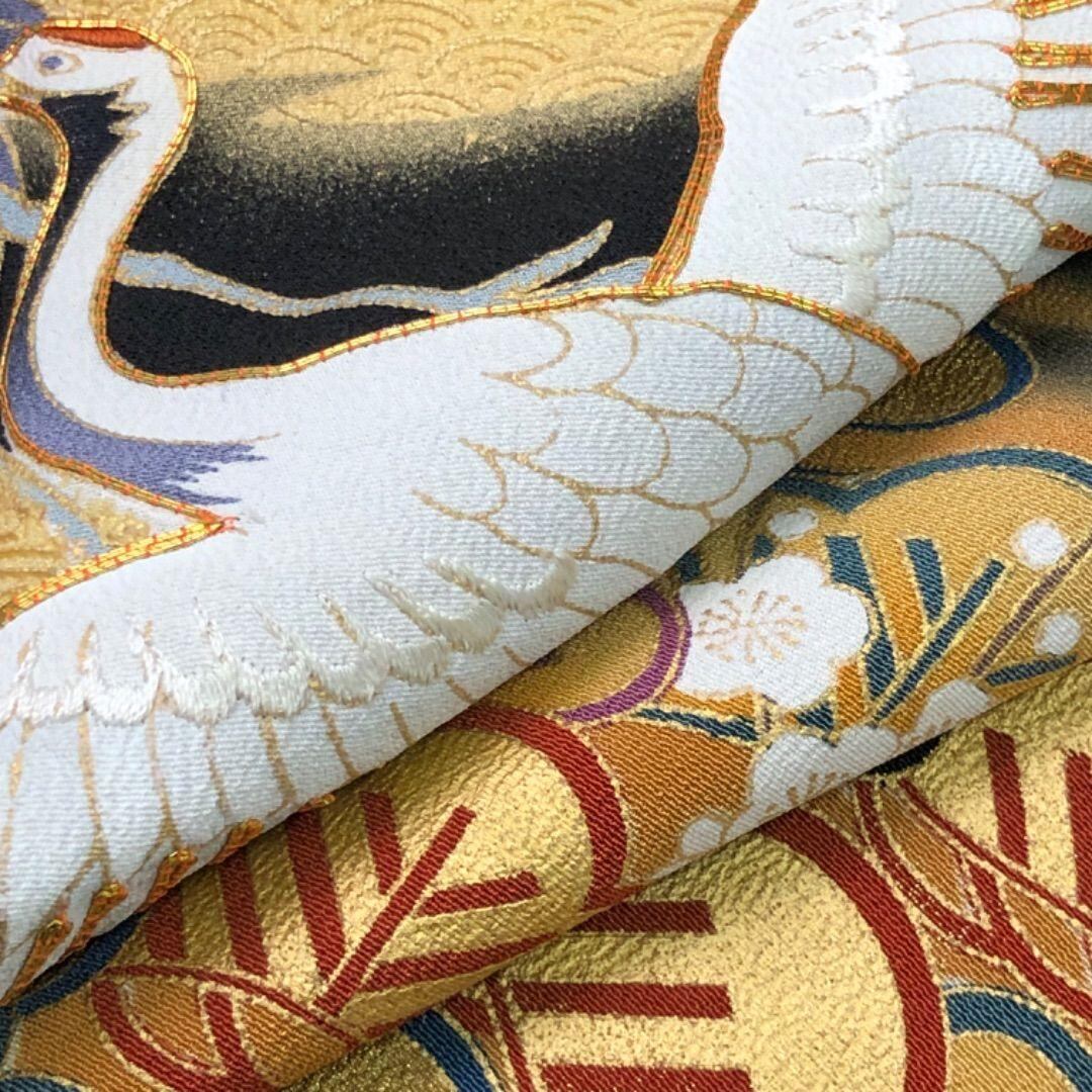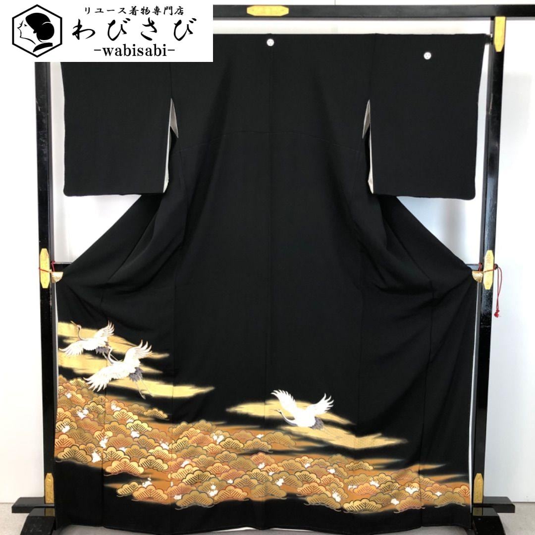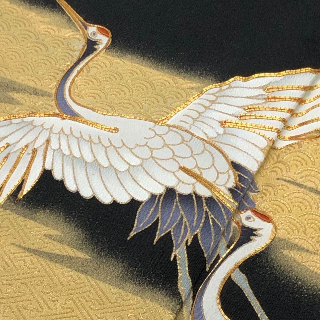 金駒刺繍、金彩が使われた煌びやかな松に鶴、青海波などの美しい柄裄がデザインされた素敵なお品でございます。