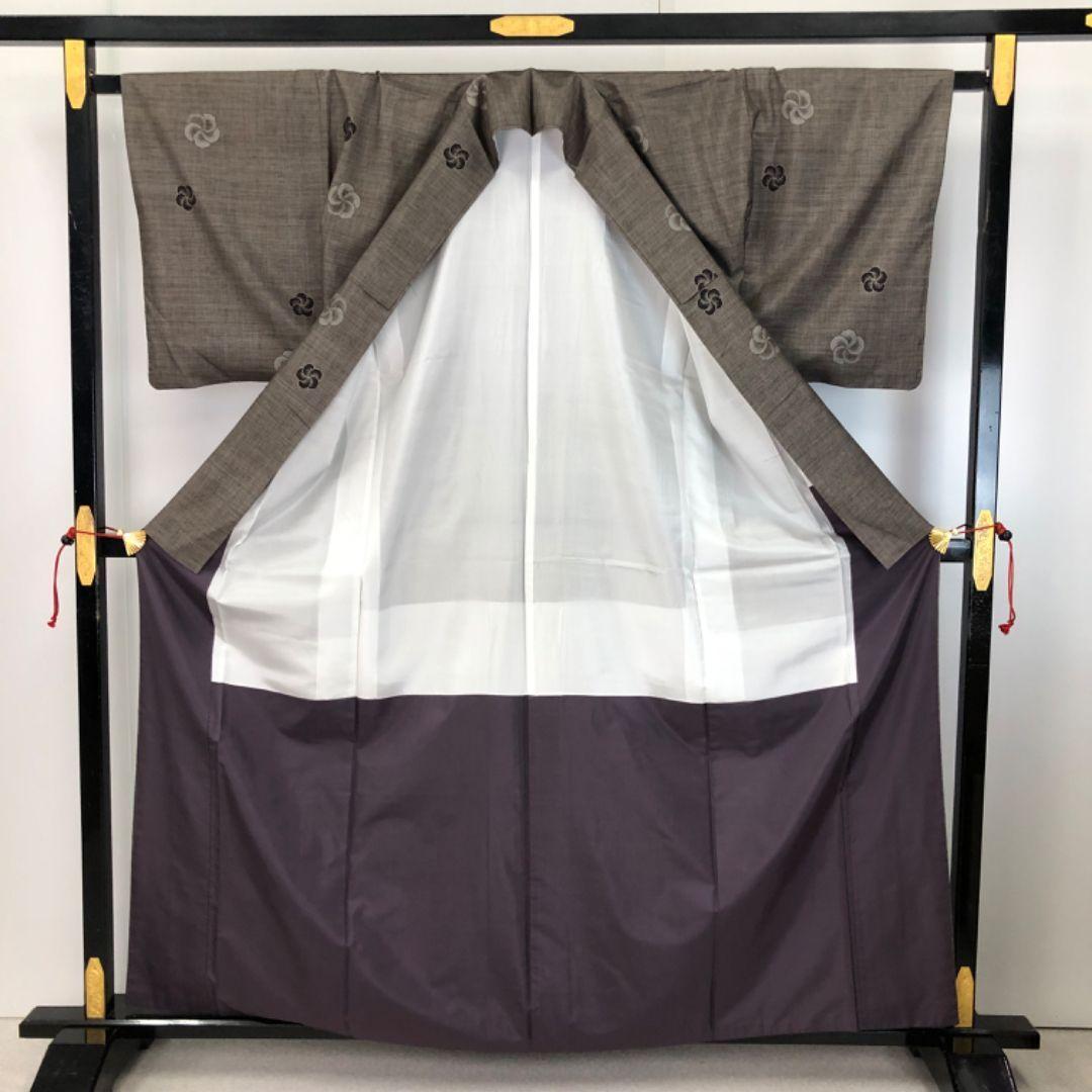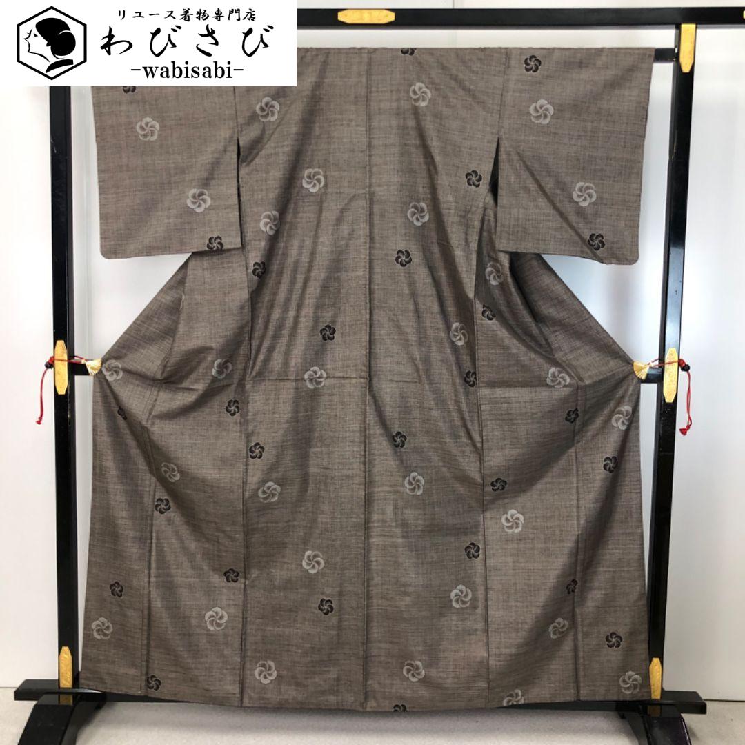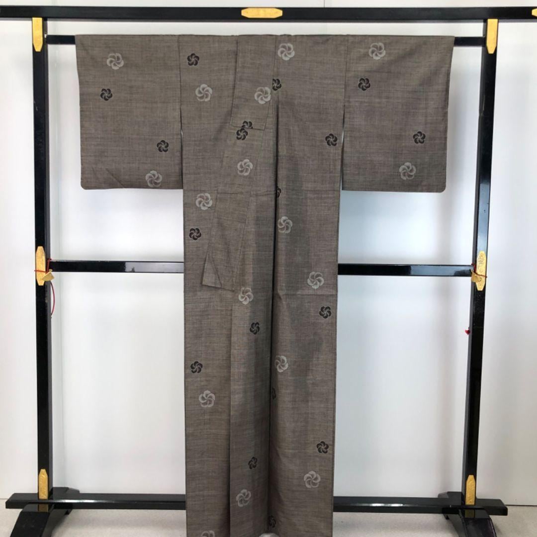 純泥染の落ち着きあるお色味に捻り梅の絣柄がデザインされた雰囲気の良い素敵なお品でございます。