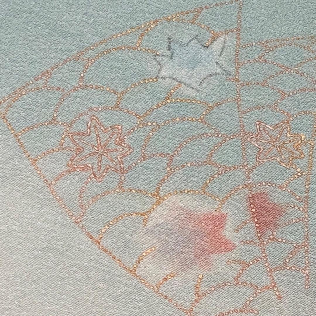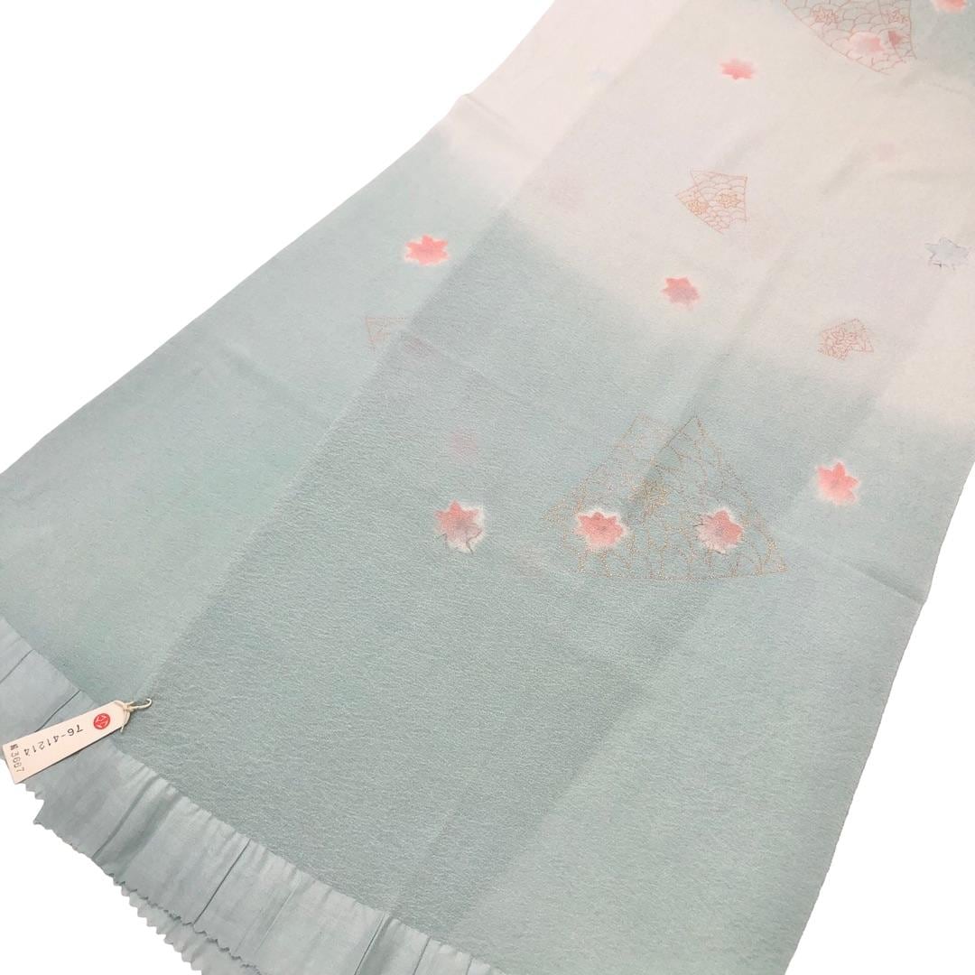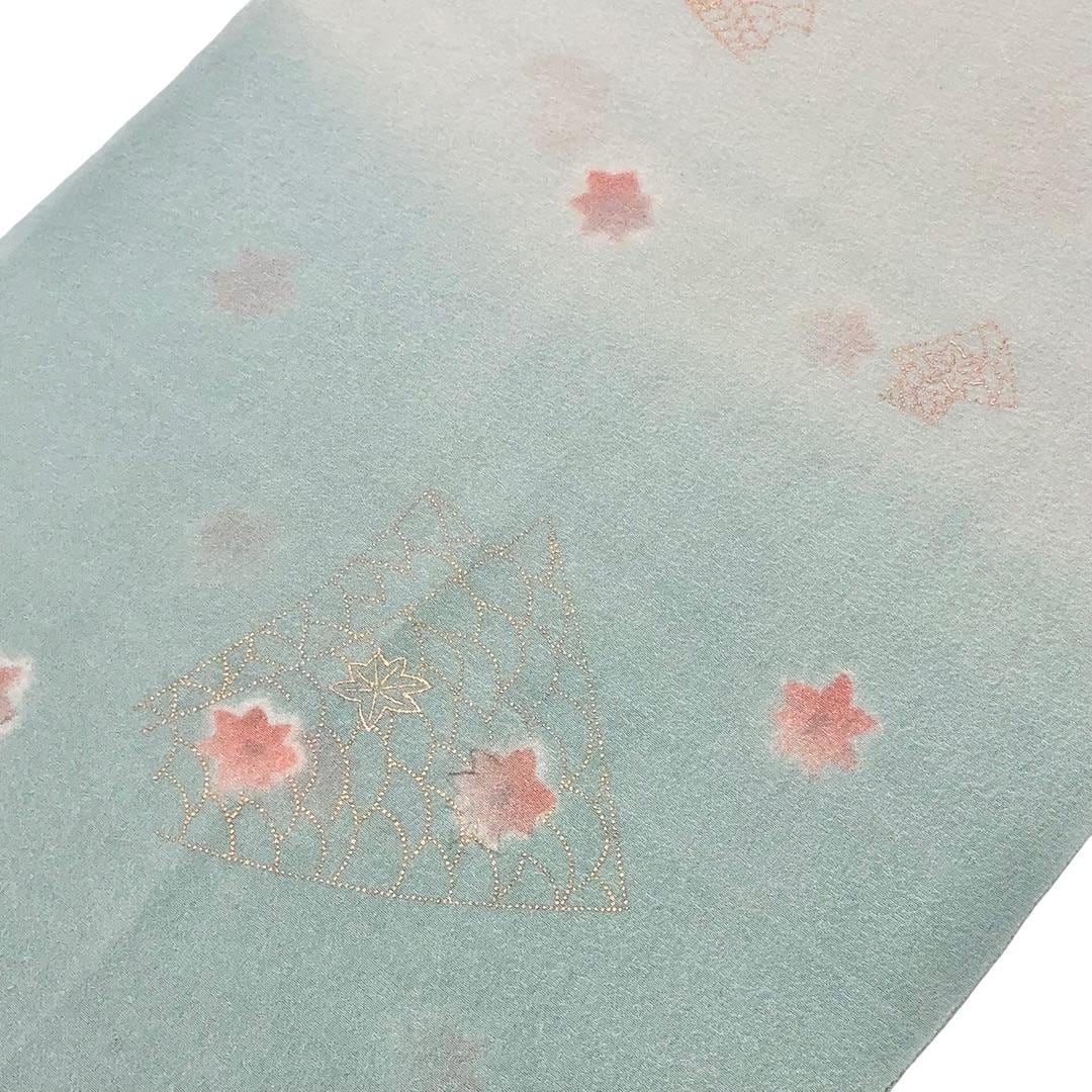 薄水色ベースのお色味に綸子の帯揚げ、平組紐の帯締めの素敵なお品でございます。