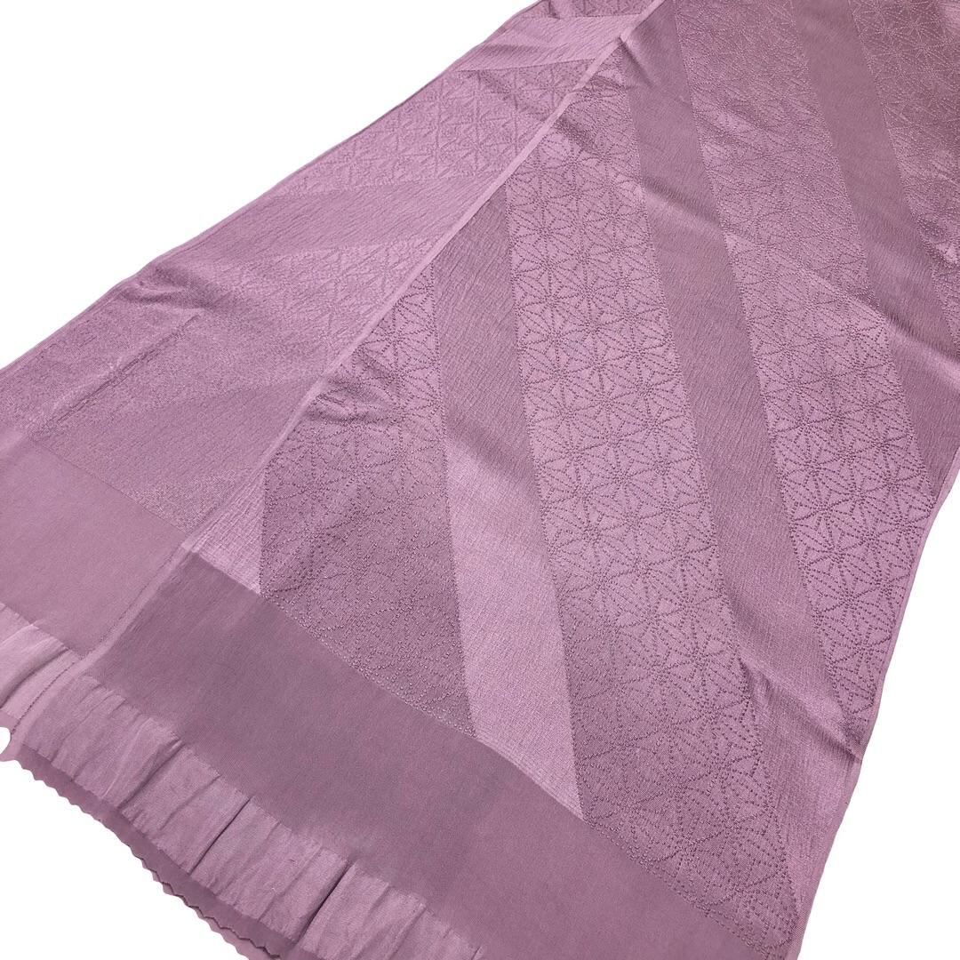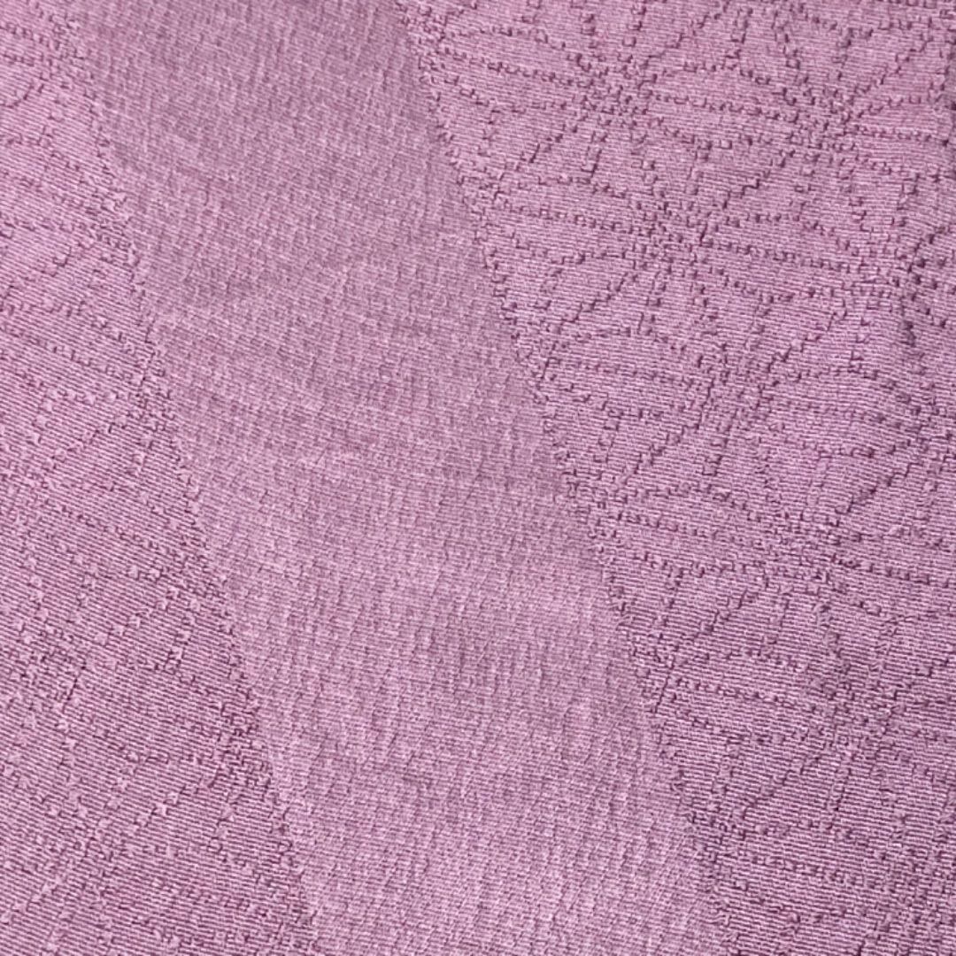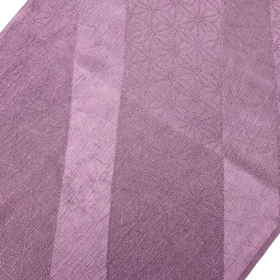 鳩羽色のお色味に麻の葉模様がデザインされた帯揚げ、冠組の帯締めの素敵なお品でございます。