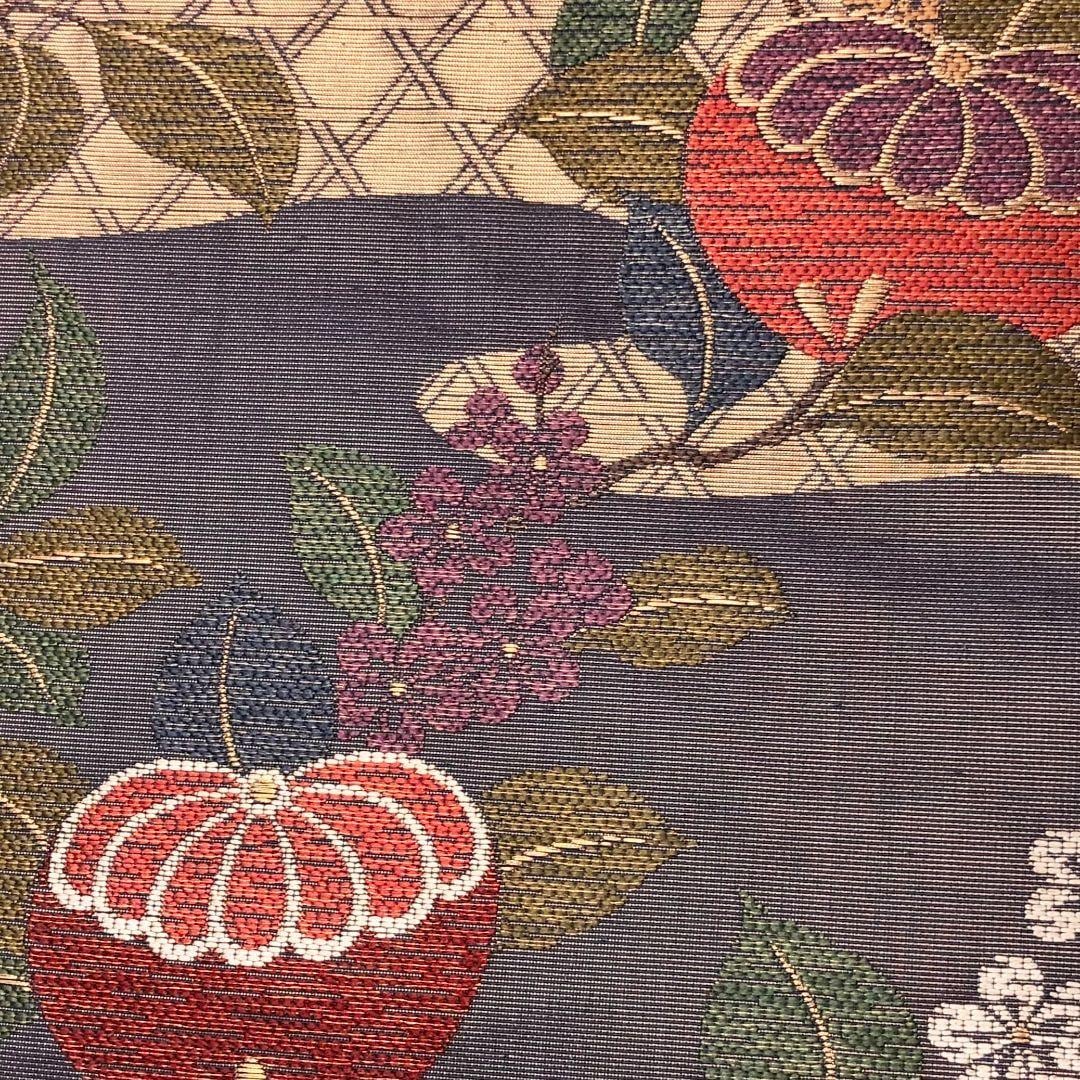 袋帯 花井幸子 橘 花模様 エ霞 金糸 相思鼠色 O-5940 着物 きもの kimono 和服 和装 中古 リサイクル着物 【送料無料】