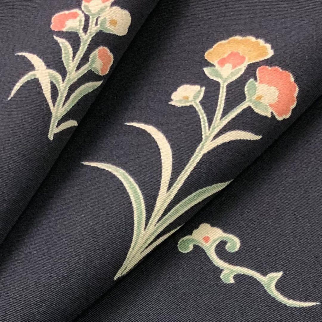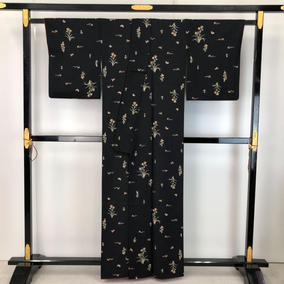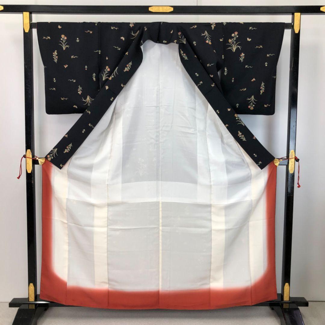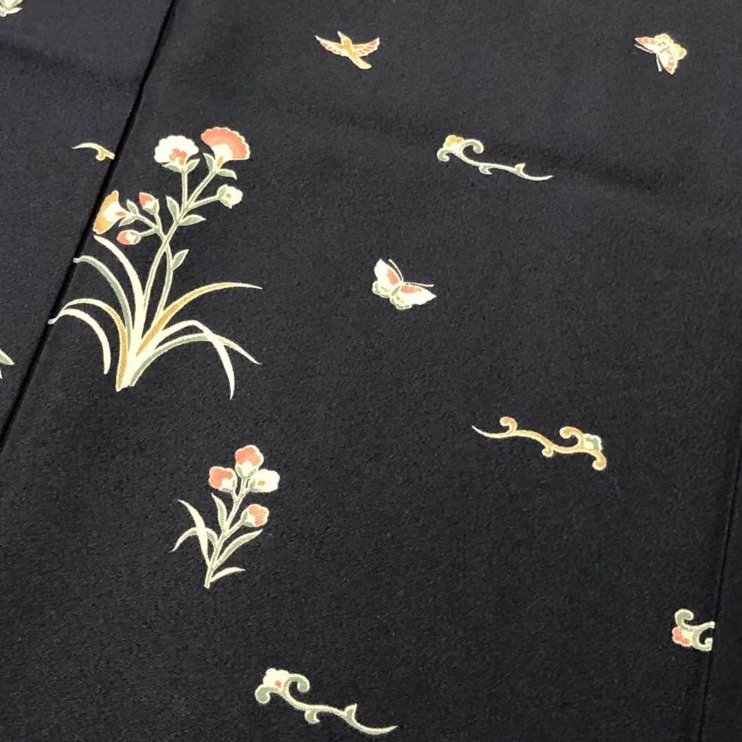 黒色に蝶々、鳥、花模様などがデザインされた素敵なお品でございます。
