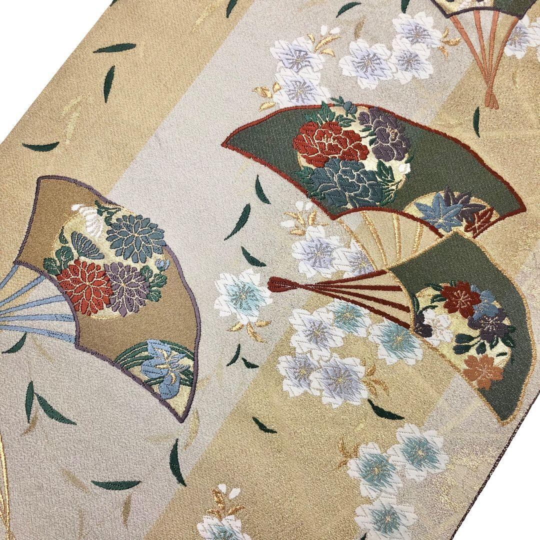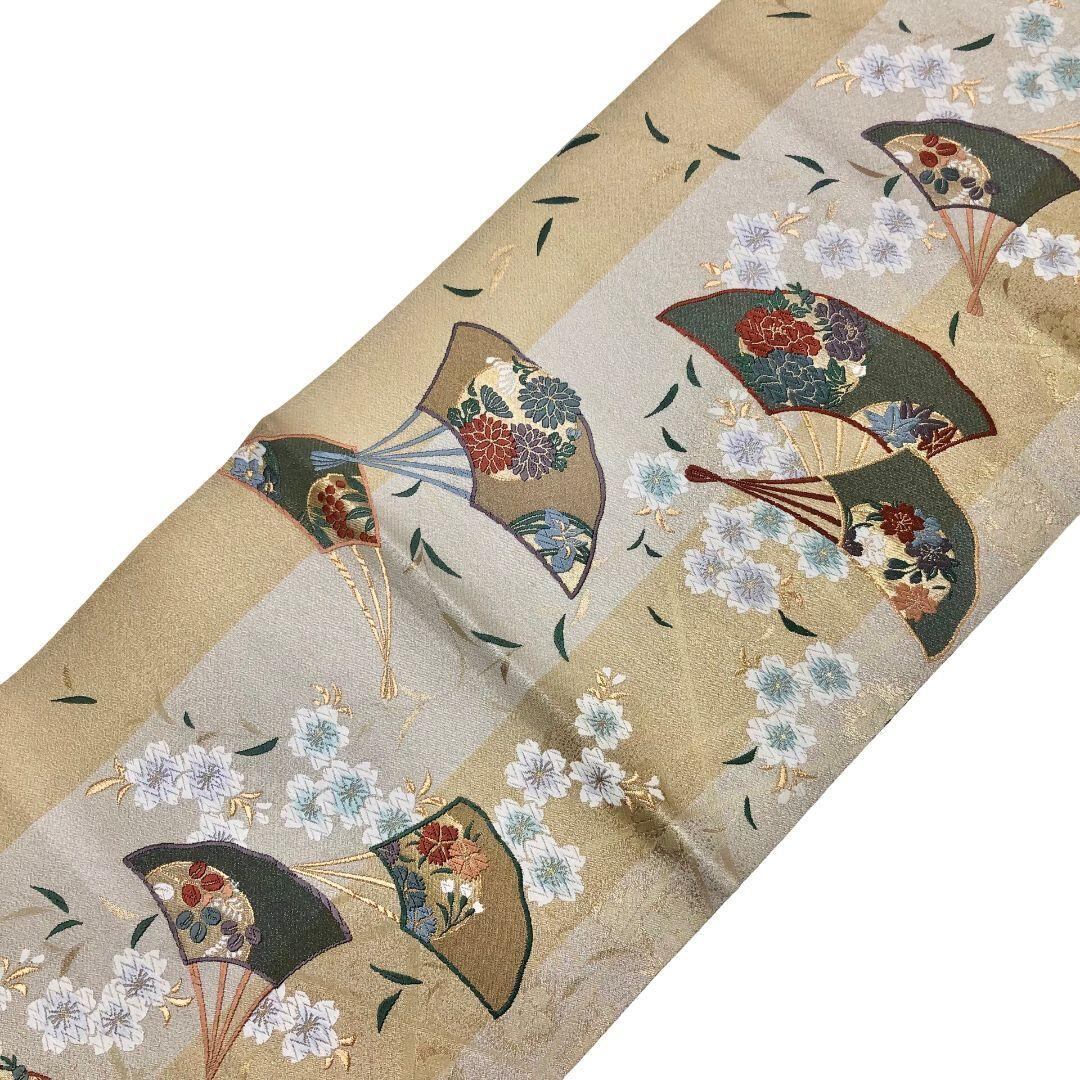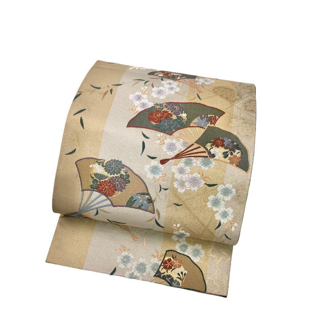 袋帯 扇子に花模様 金糸 三越お誂え O-5994 着物 きもの kimono 和服 和装 中古 リサイクル着物 【送料無料】