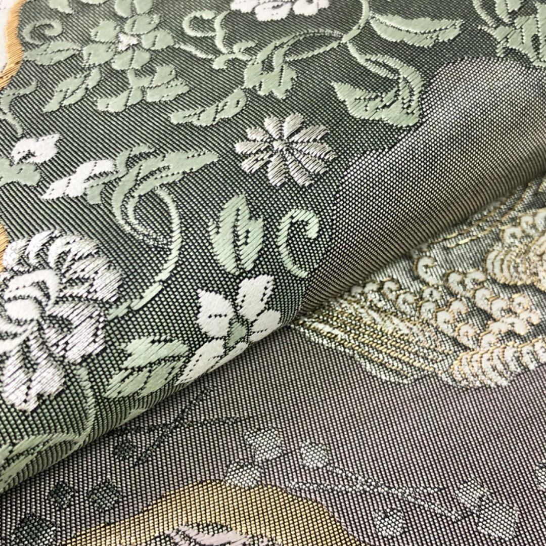 袋帯 道長取り 華柄模様 花唐草 波模様 金銀糸 O-6011 着物 きもの kimono 和服 和装 中古 リサイクル着物 【送料無料】