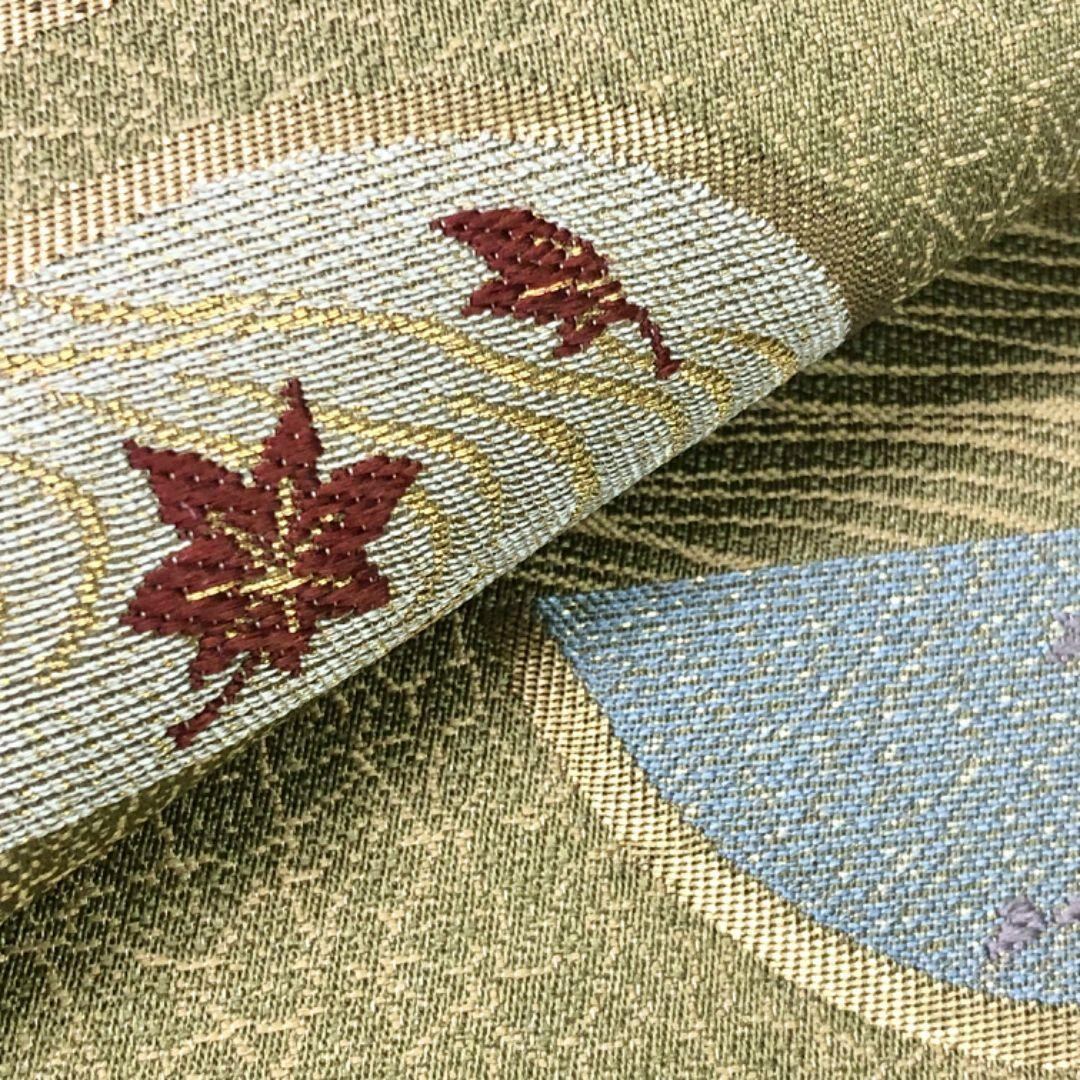 名古屋帯 波模様に魚柄 紅葉 金銀糸 呉竹鼠色 O-6005 着物 きもの kimono 和服 和装 中古 リサイクル着物 【送料無料】