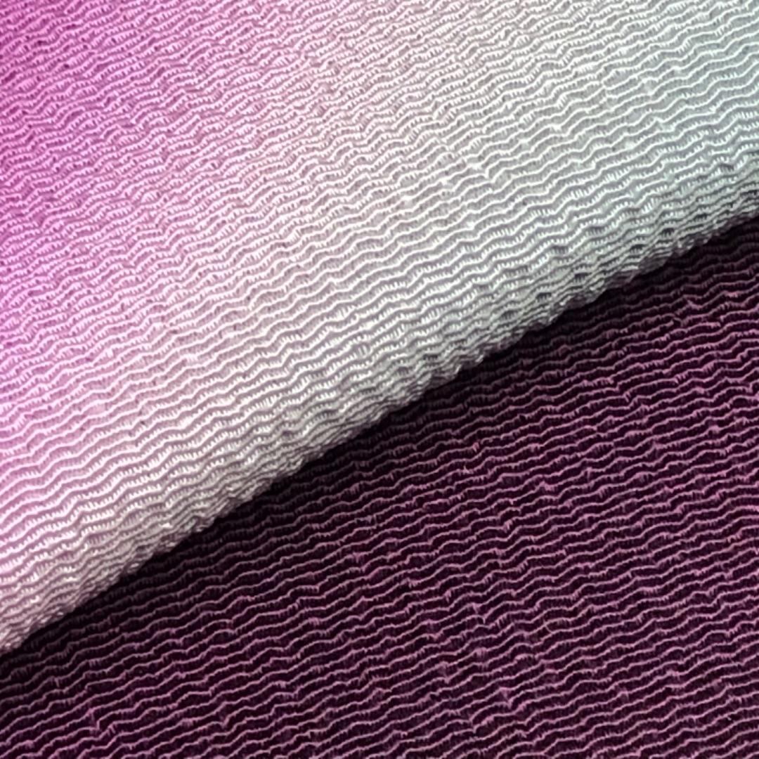 至極色ベースの染分けのお色味に縮緬の素敵なお品でございます。