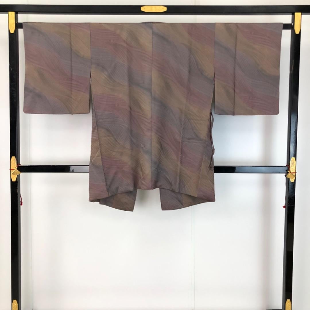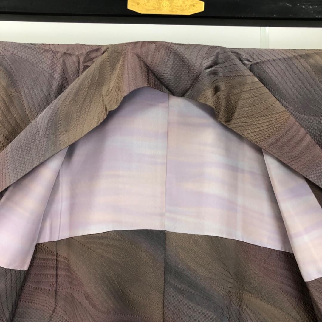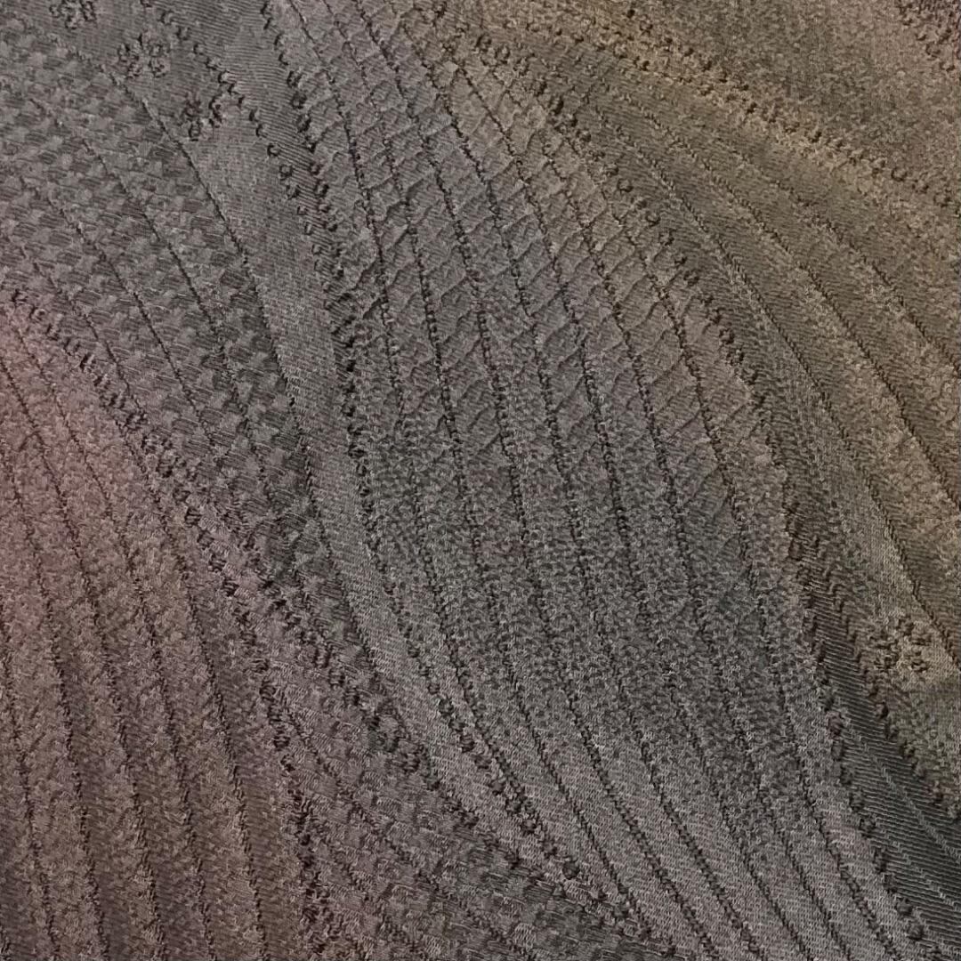暁鼠色ベースの暈しのお色味に曲線模様がデザインされた素敵なお品でございます。