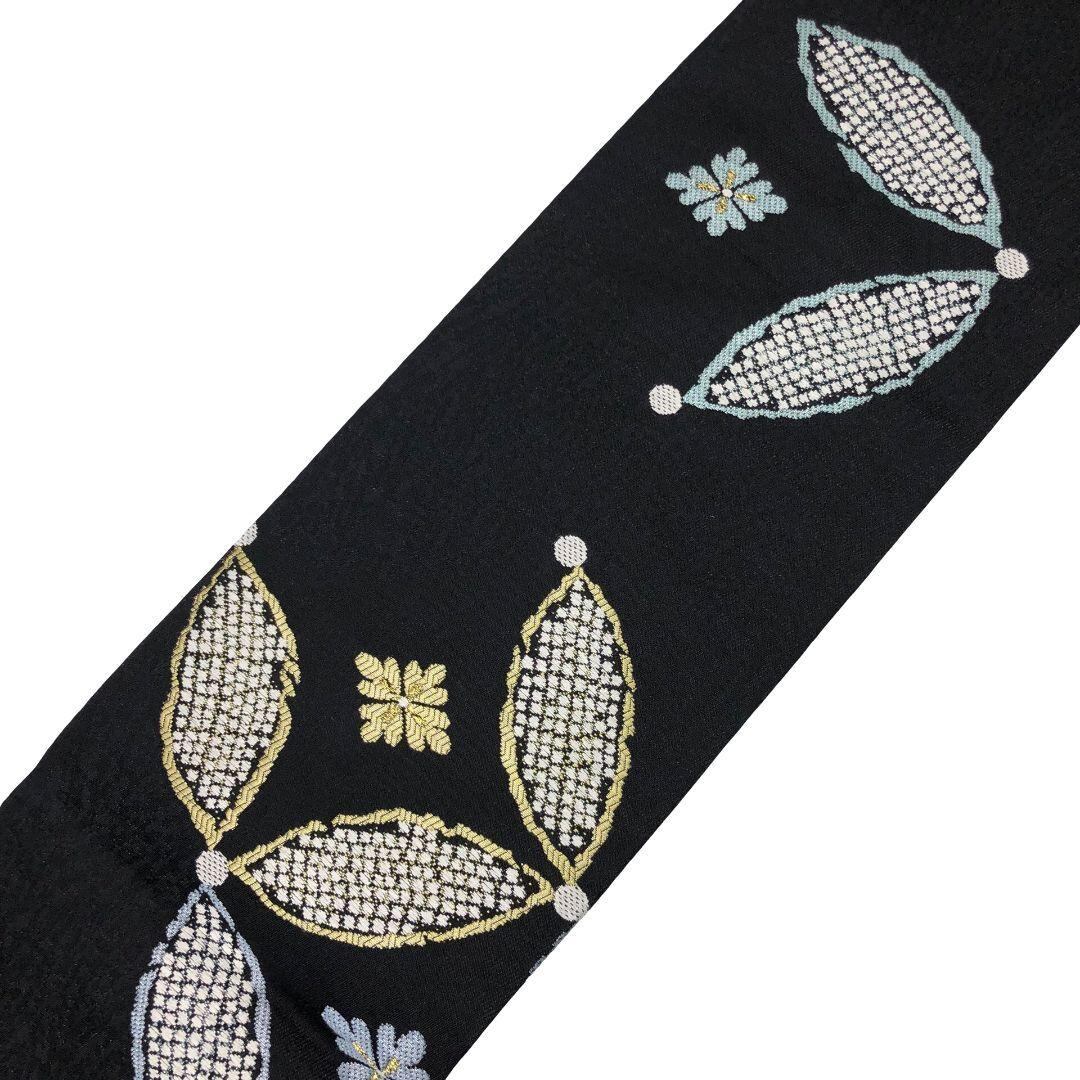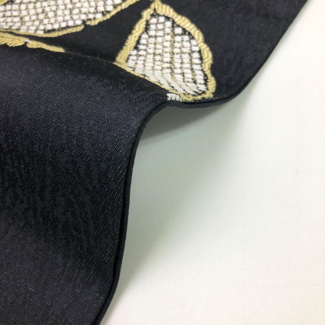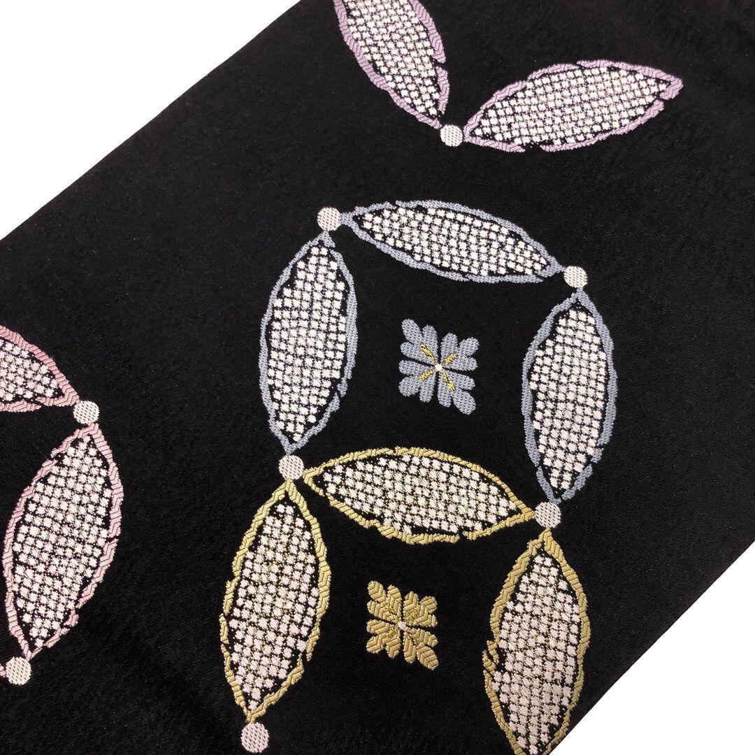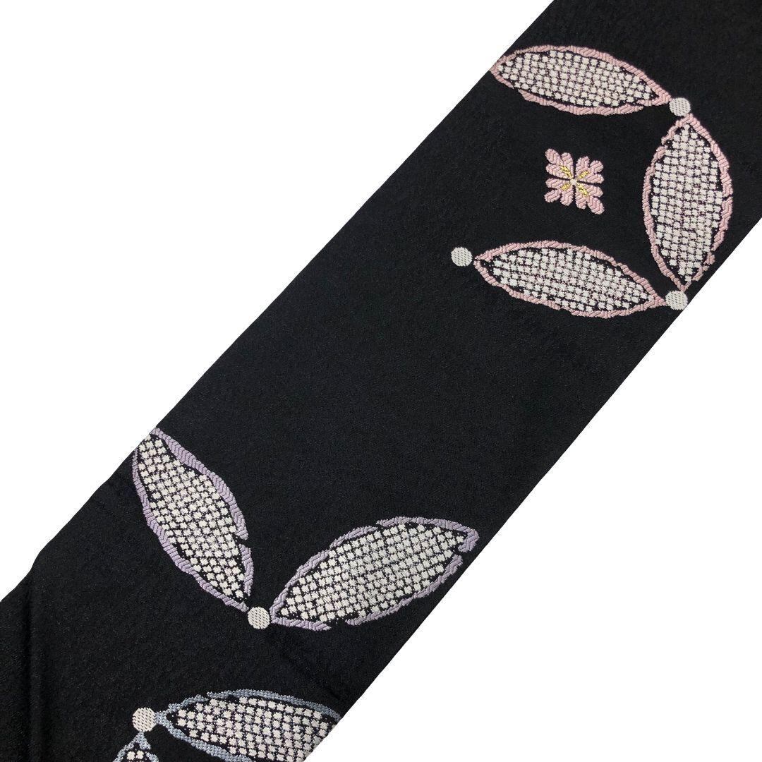 黒色のお色味に花七宝の柄行がデザインされた雰囲気の良い素敵なお品でございます。