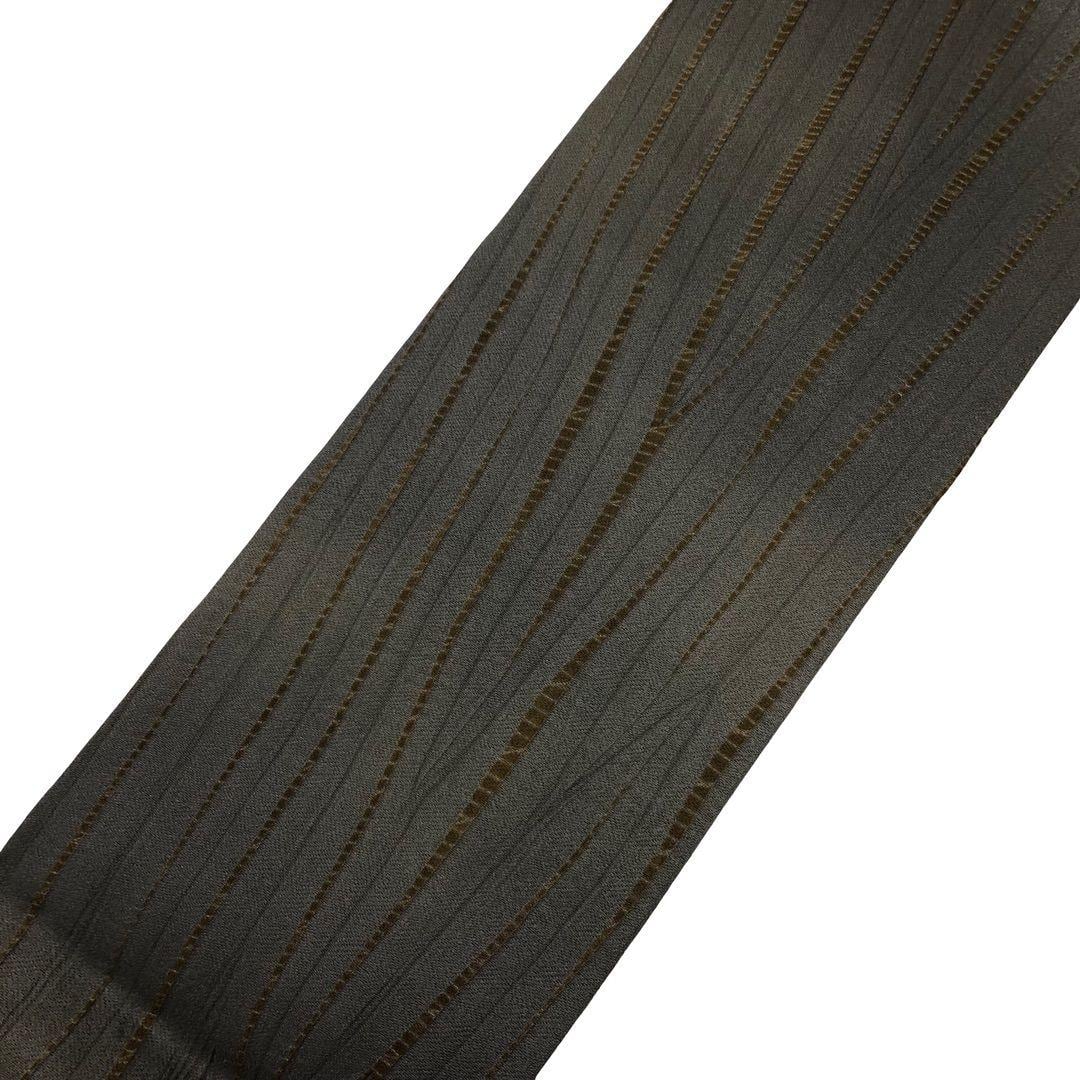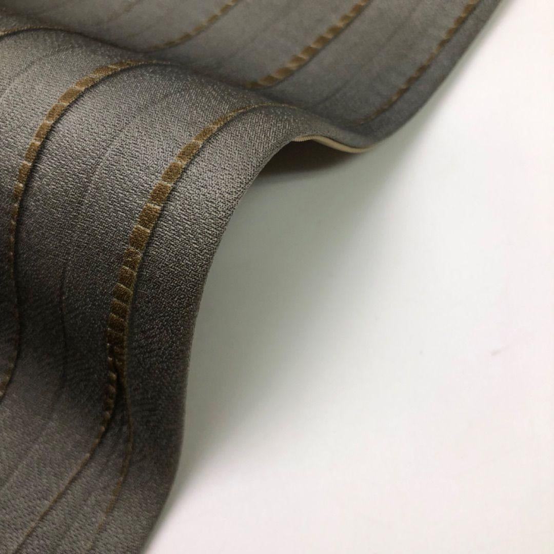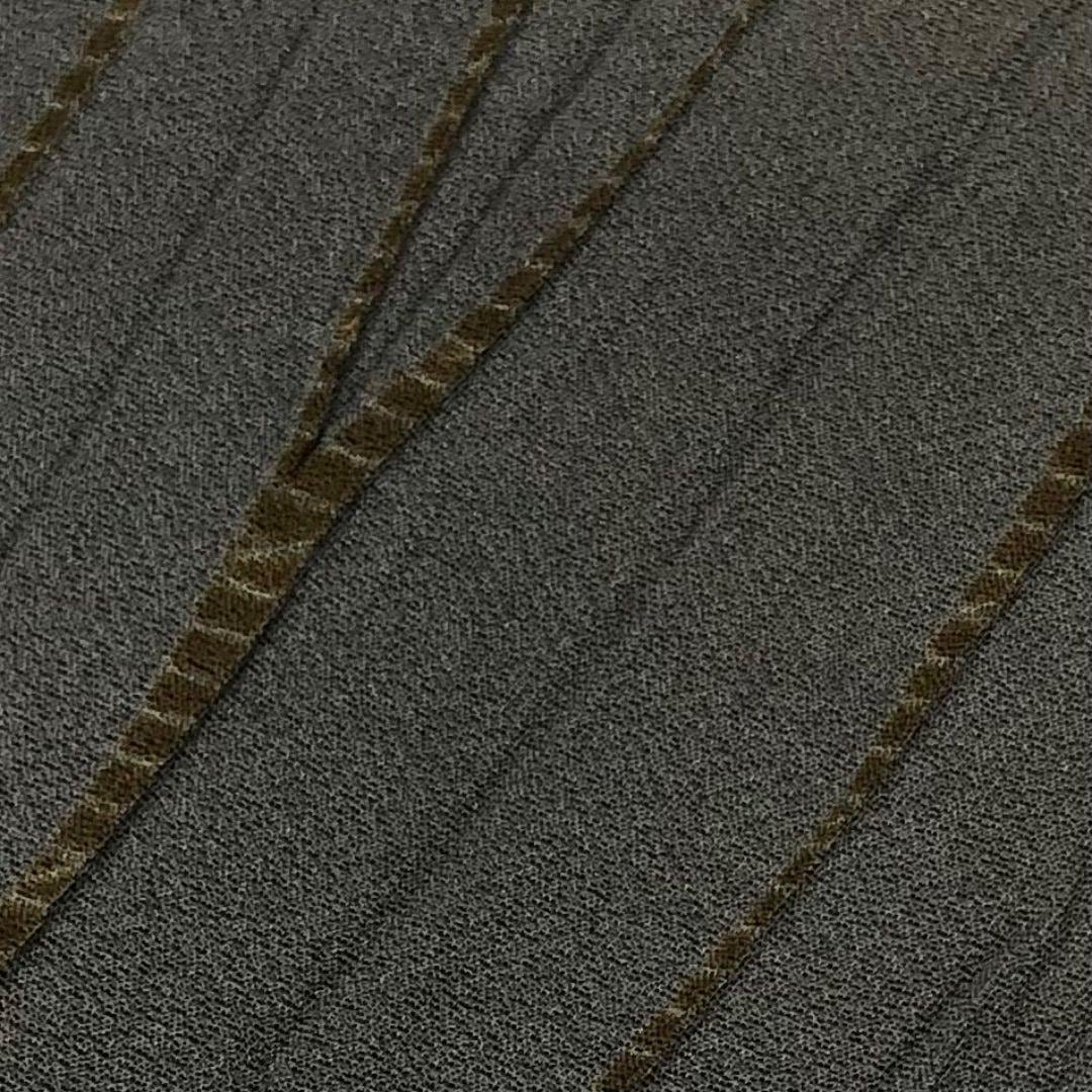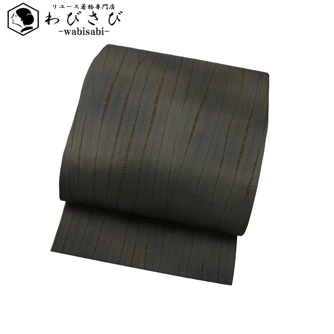 薄鉄鼠色ベースの落ち着いたお色味に縦柄の絞り模様がデザインされた雰囲気の良い素敵なお品でございます。