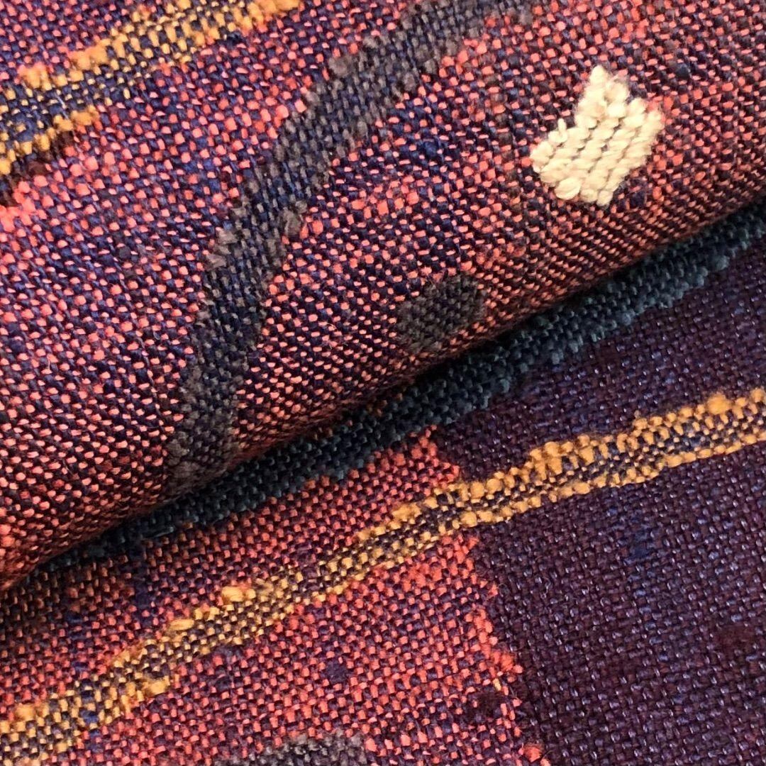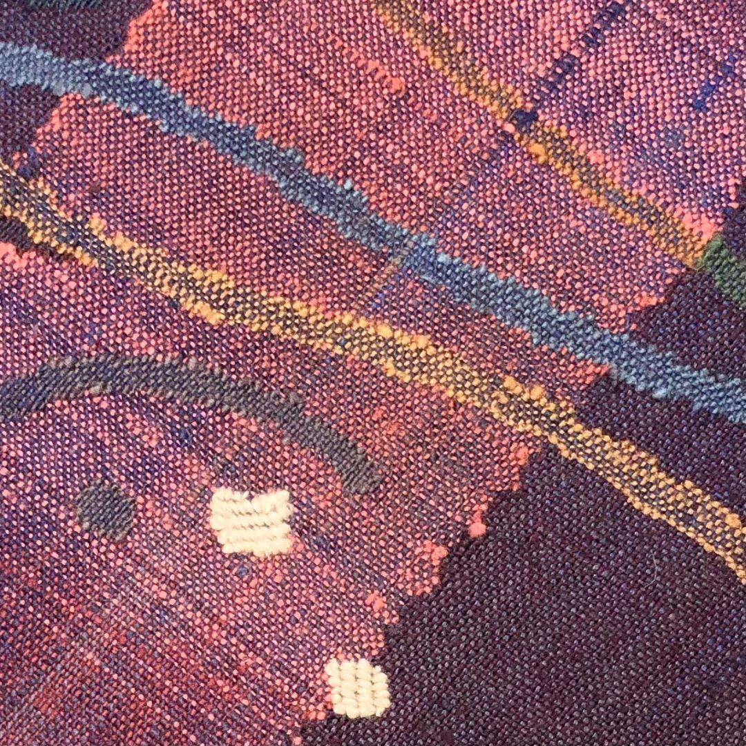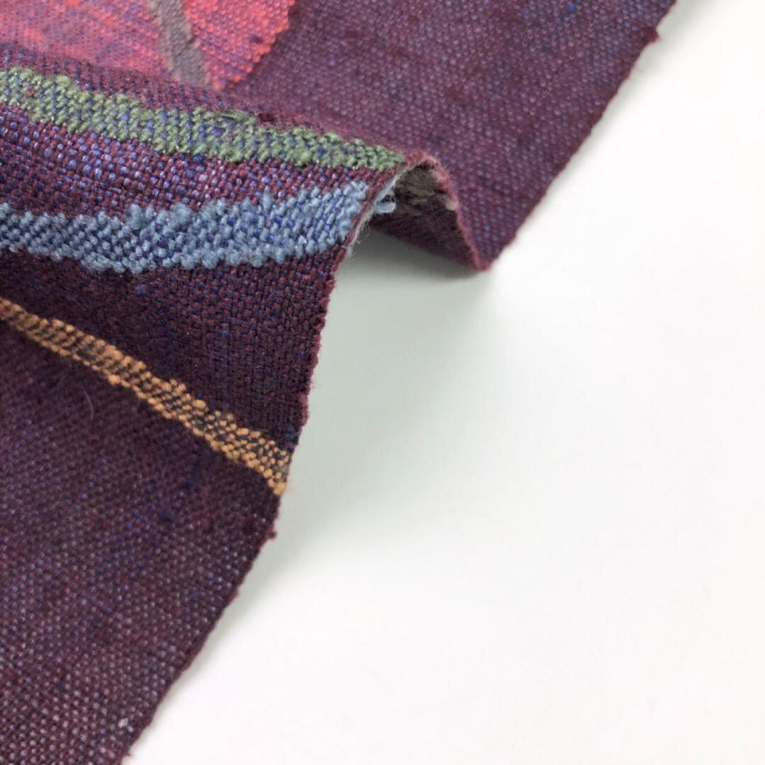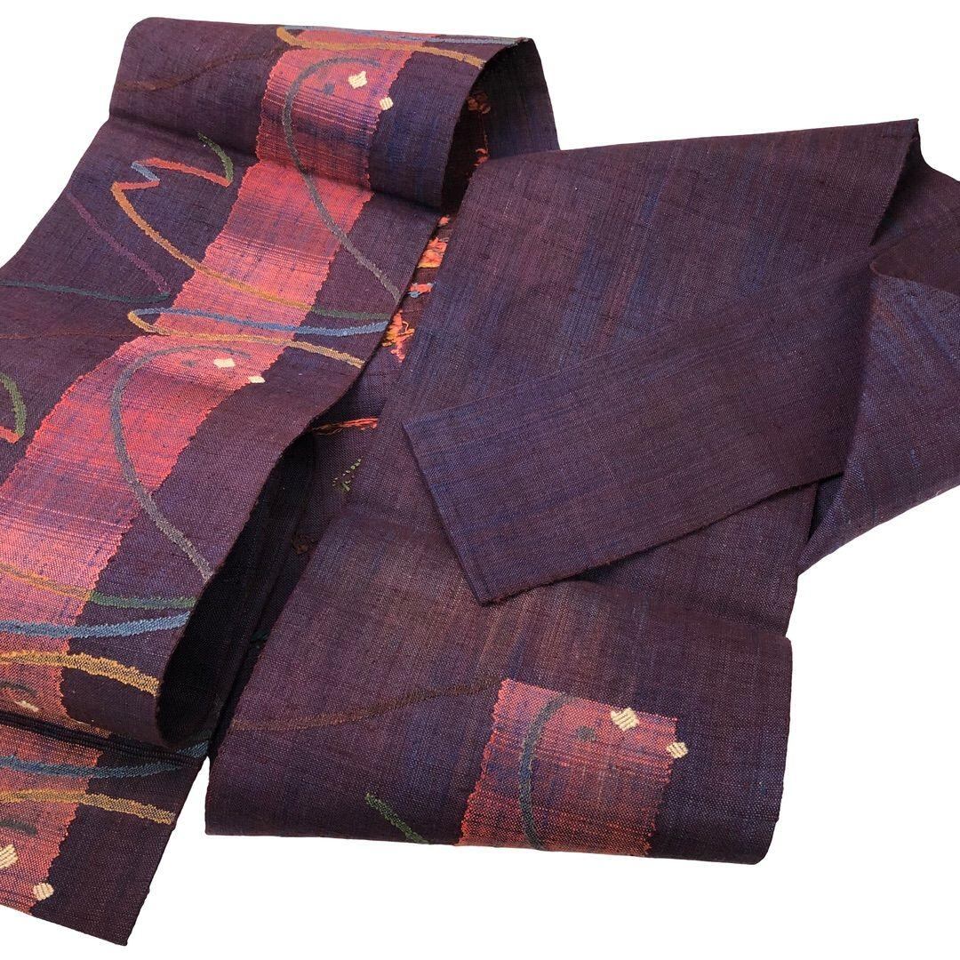 紫烏色ベースのお色味に抽象模様の織柄がデザインされた雰囲気の良い素敵なお品でございます。