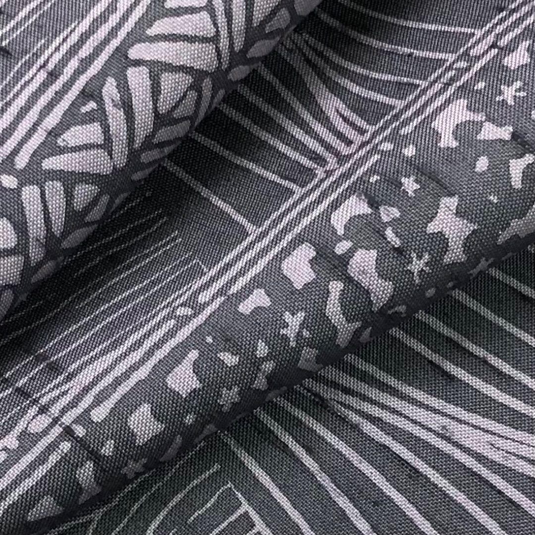 葡萄鼠色のお色味の牛首紬に雰囲気の良い染柄がデザインされた素敵なお品でございます。