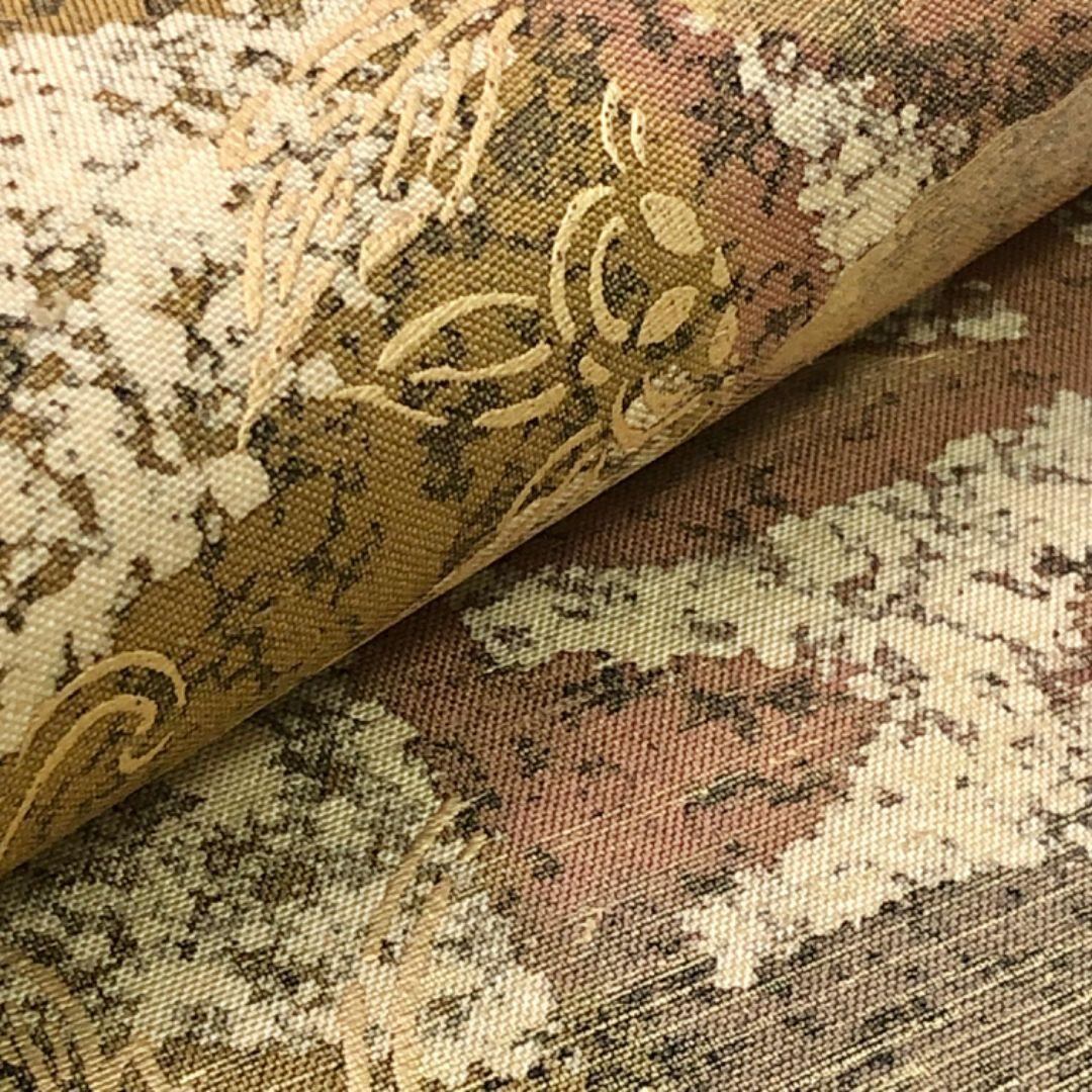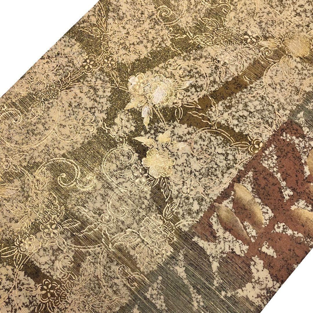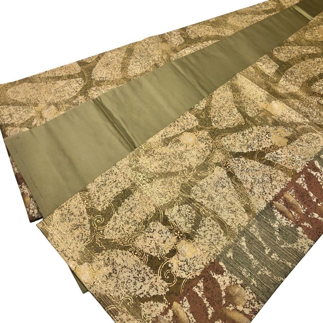 袋帯 牛首紬 石川県指定無形文化財 証紙付 花唐草模様 利休茶色 O-6002 着物 きもの kimono 和服 和装 中古 リサイクル着物 【送料無料】