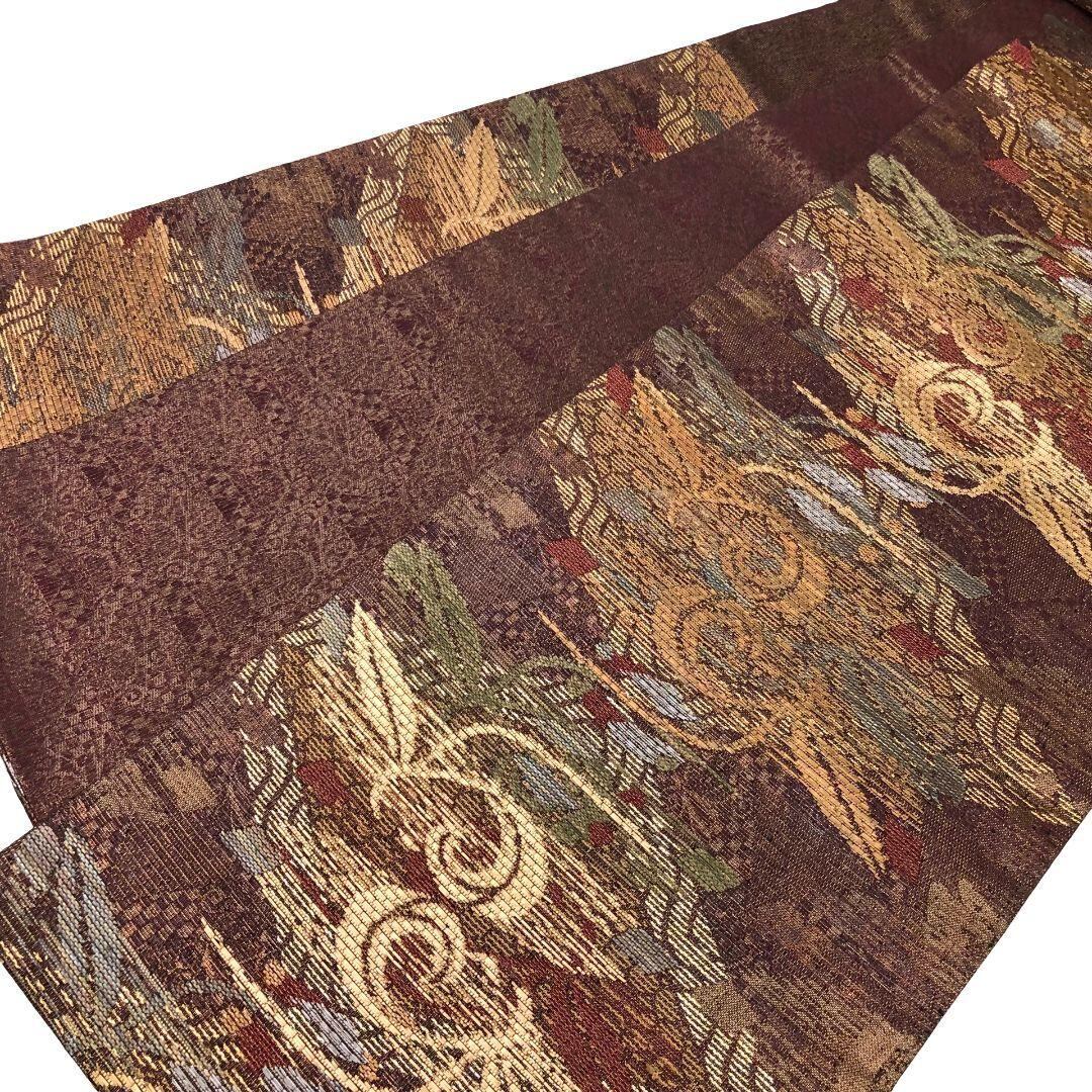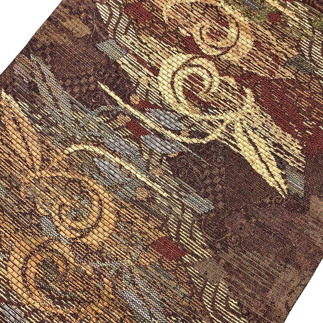 袋帯 菱形に花唐草模様 金糸 紫烏色 O-6013 着物 きもの kimono 和服 和装 中古 リサイクル着物 【送料無料】