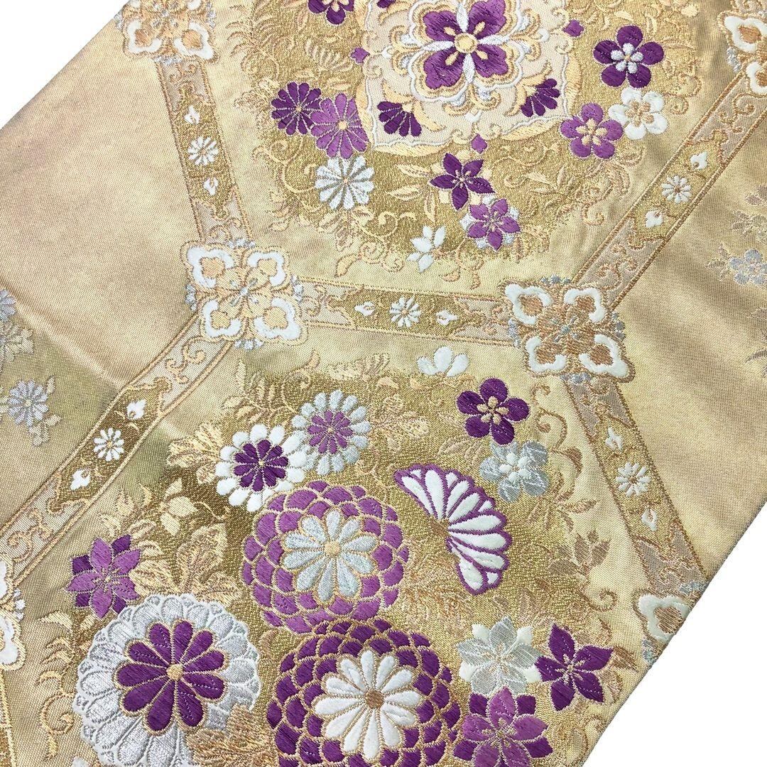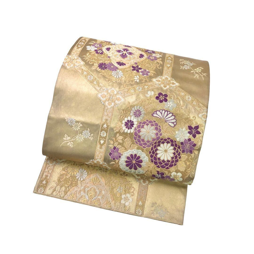 袋帯 西陣 聚楽 帝王紫 亀甲に華柄 菊の花 金色 O-6022 着物 きもの kimono 和服 和装 中古 リサイクル着物 【送料無料】