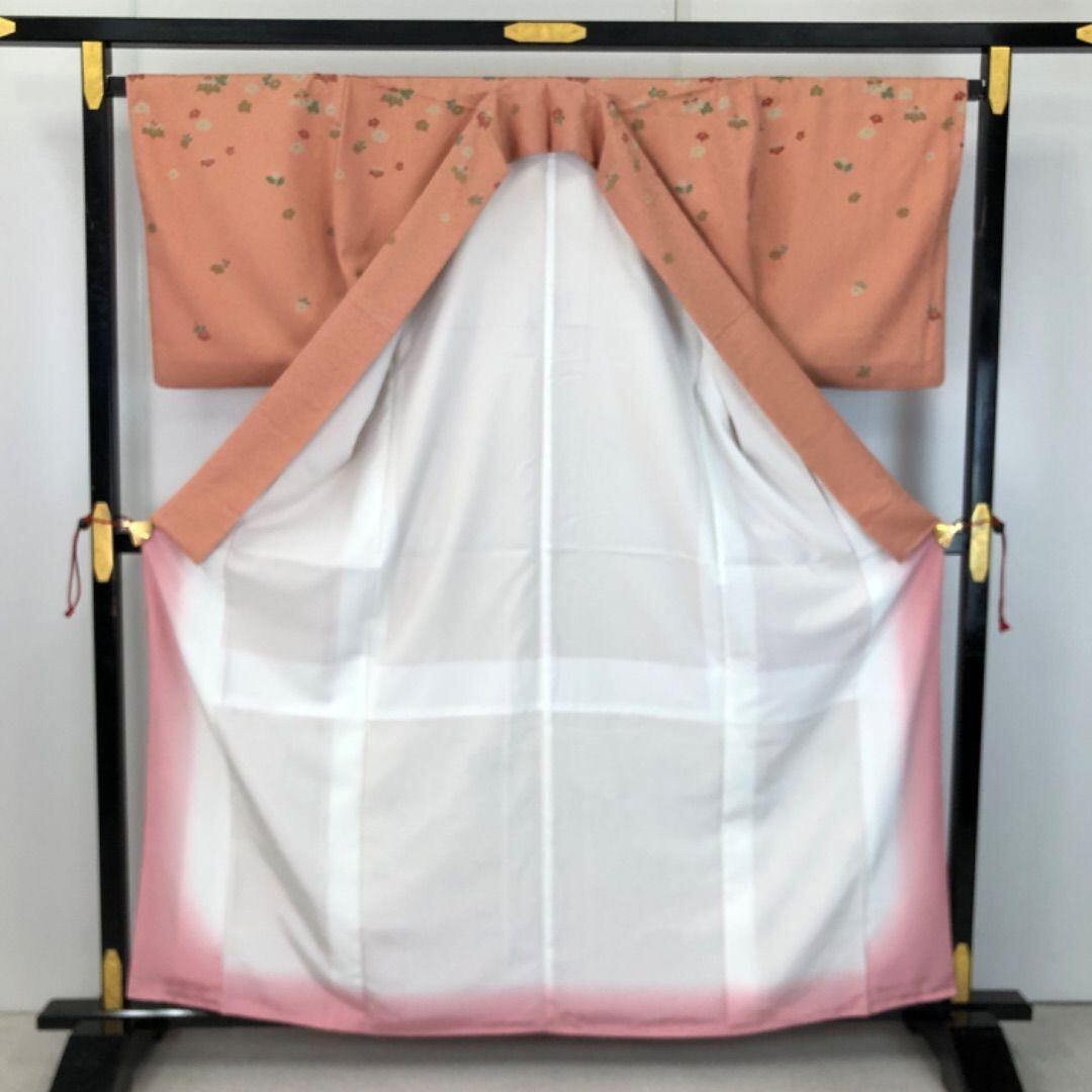 付下げ 美しい花模様 中紅色 グラデーション 金彩 K-5751 着物 きもの kimono 和服 和装 中古 リサイクル着物 【送料無料】
