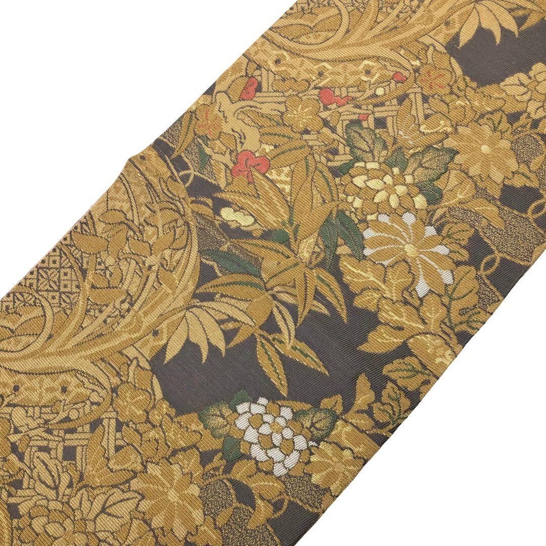 袋帯 金華山織 美しい花模様 金糸 薄鋼色 O-6036 着物 きもの kimono 和服 和装 中古 リサイクル着物 【送料無料】