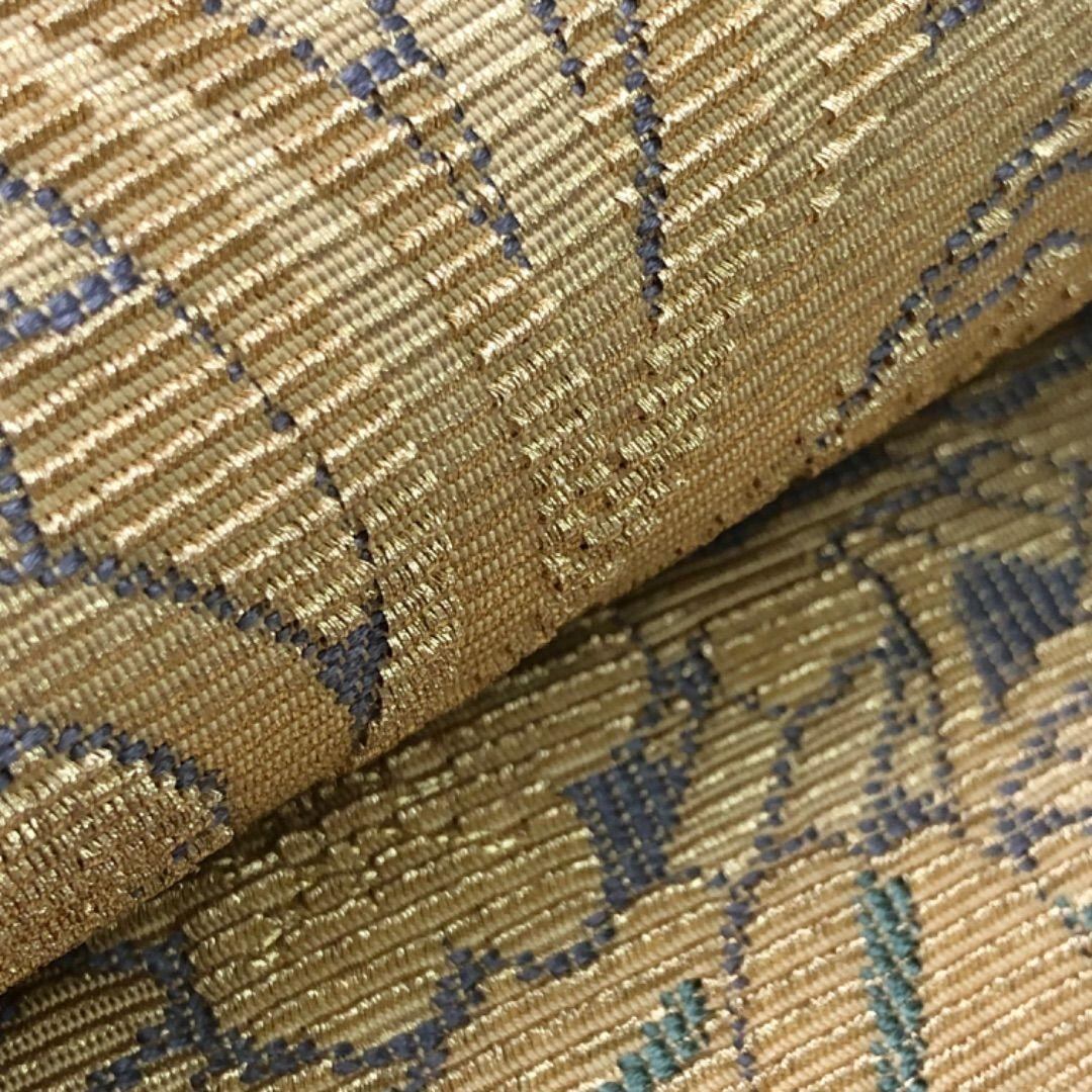 薄鋼色ベースのお色味に美しい金華山織の花模様がデザインされた品格漂う素敵なお品でございます。
