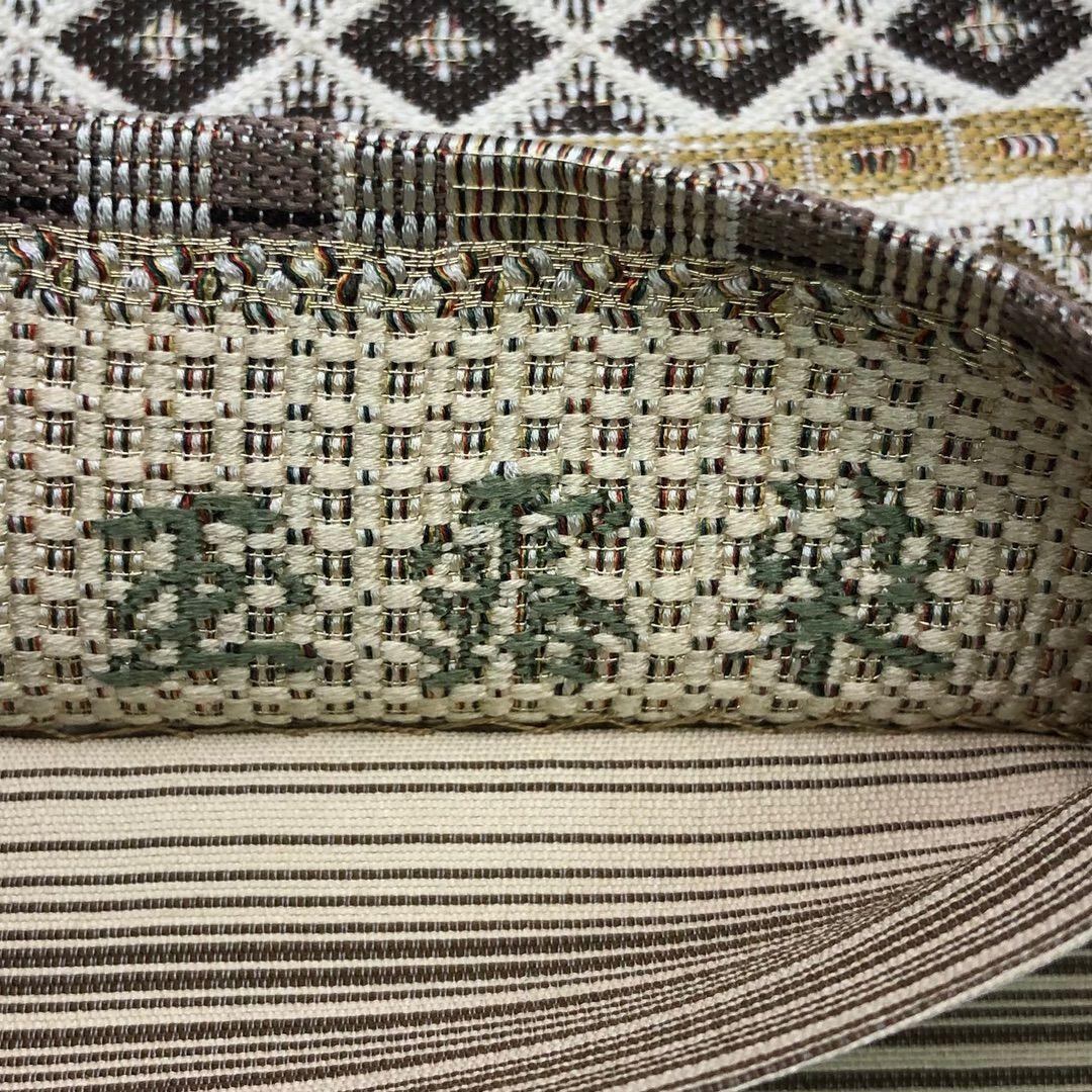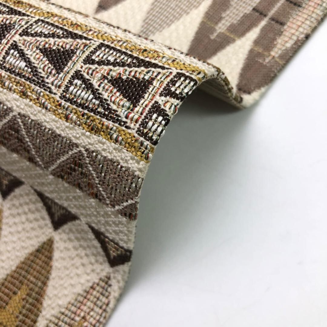 練色ベースのお色味に幾何学模様の柄裄がデザインされた雰囲気の良い素敵なお品でございます。