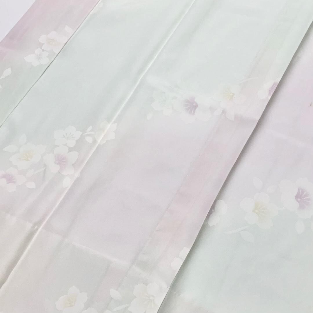 卯の花色ベースの暈しのお色味に花模様がデザインされた素敵なお品でございます。