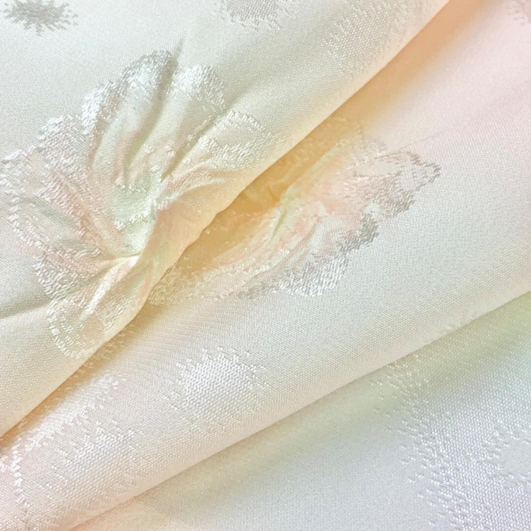 乙女色ベースのお色味に辻が花模様がデザインされた素敵なお品でございます。