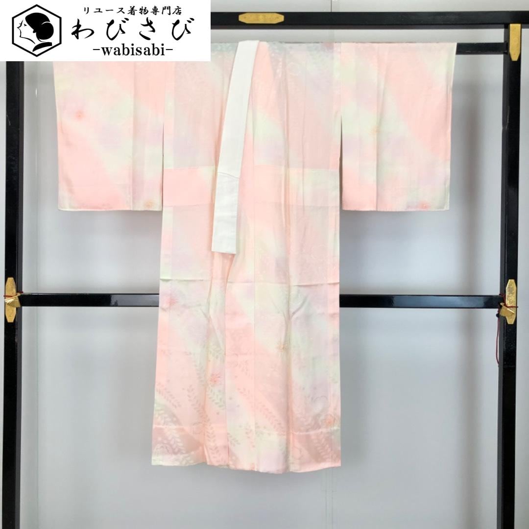長襦袢 単衣 辻が花模様 暈し 乙女色 半衿付 J-382 着物 きもの kimono 和服 和装 中古 リサイクル着物 【送料無料】