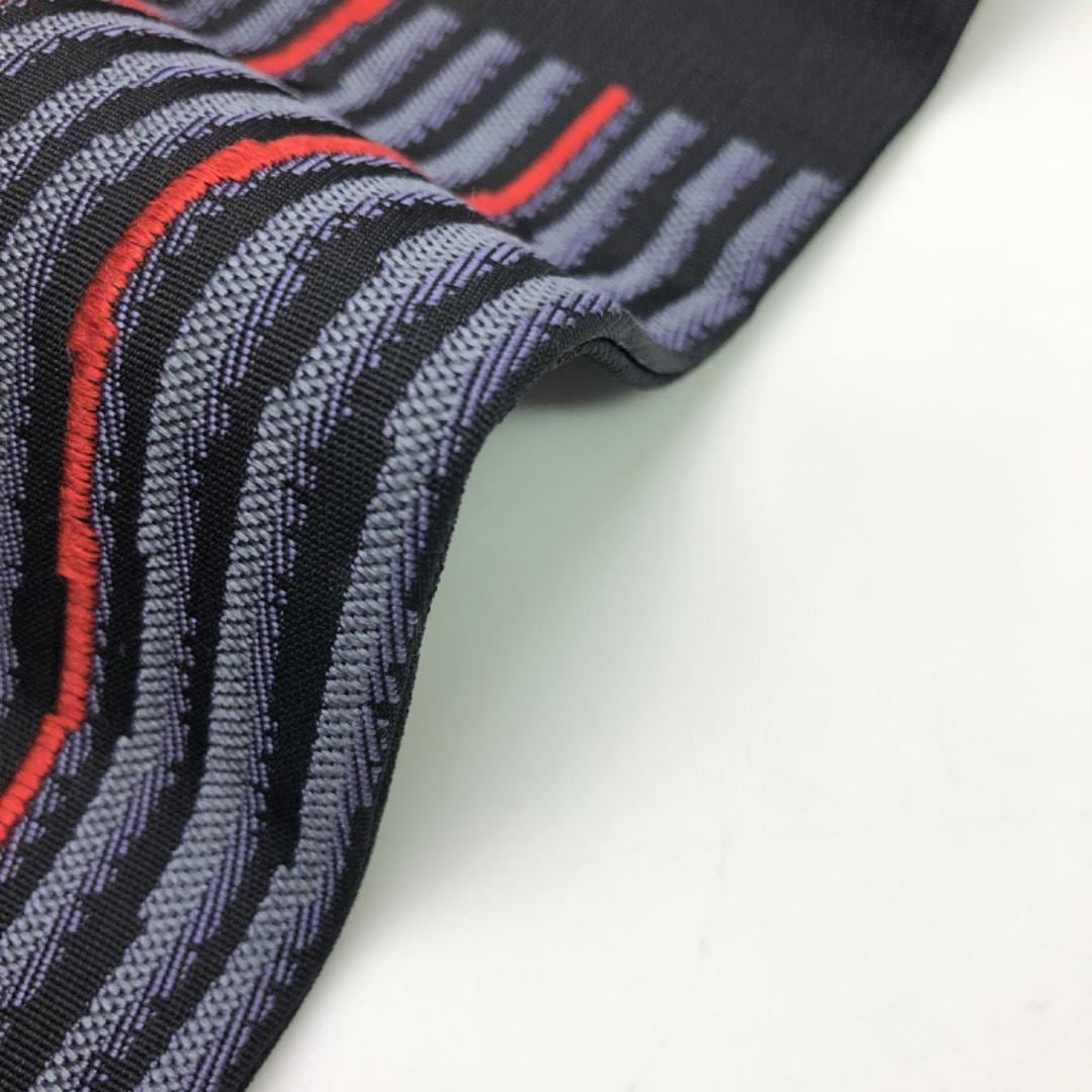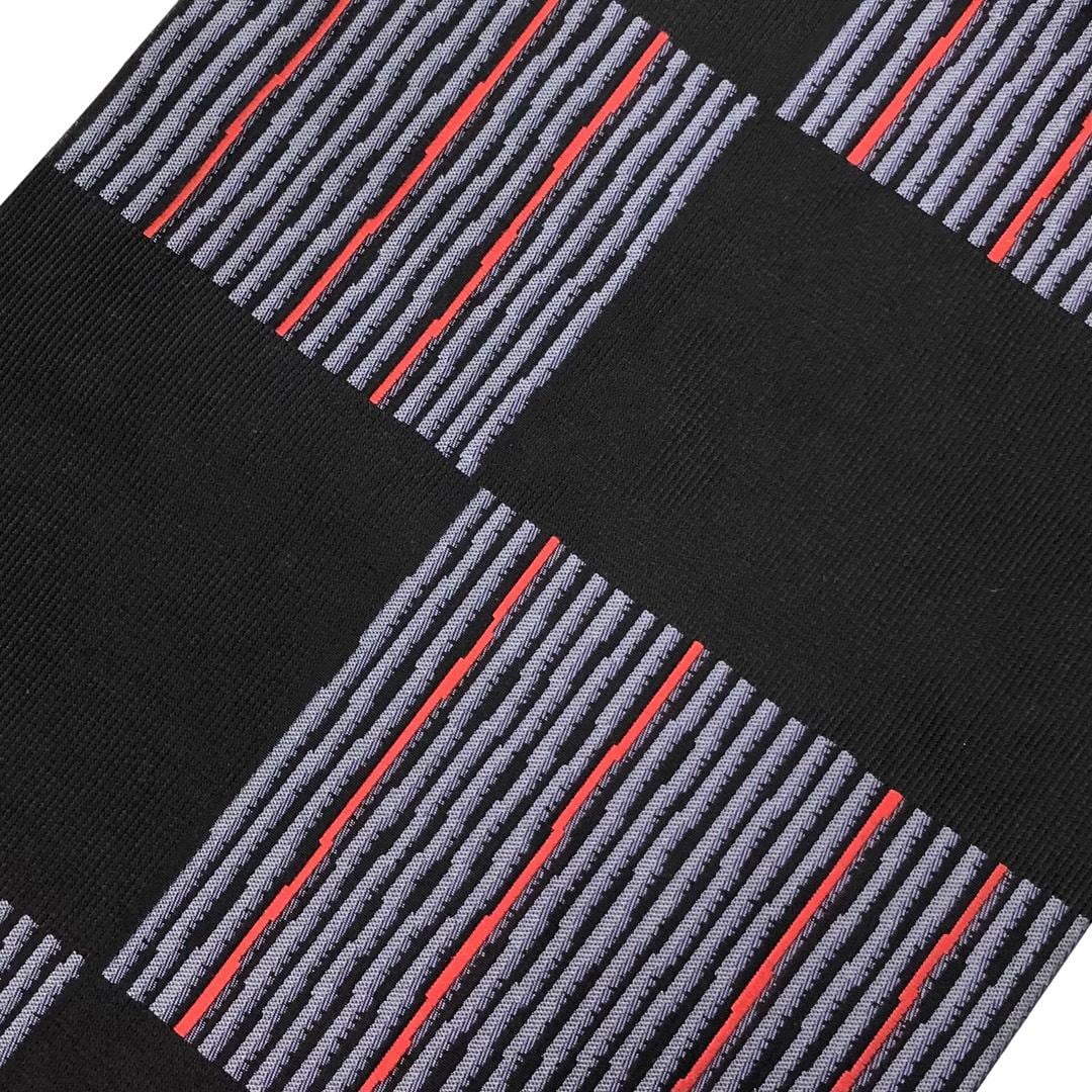 名古屋帯 西陣 長谷川織物 市松模様に縦縞 黒色 O-6071 着物 きもの kimono 和服 和装 中古 リサイクル着物 【送料無料】