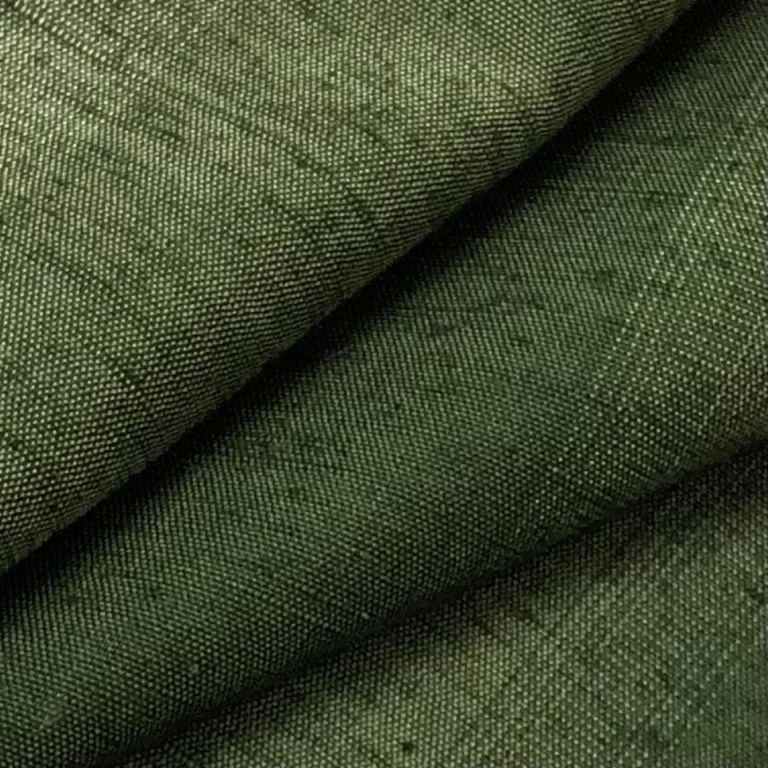 老緑色ベースのお色味に縦縞模様がデザインされた雰囲気の良い素敵なお品でございます。