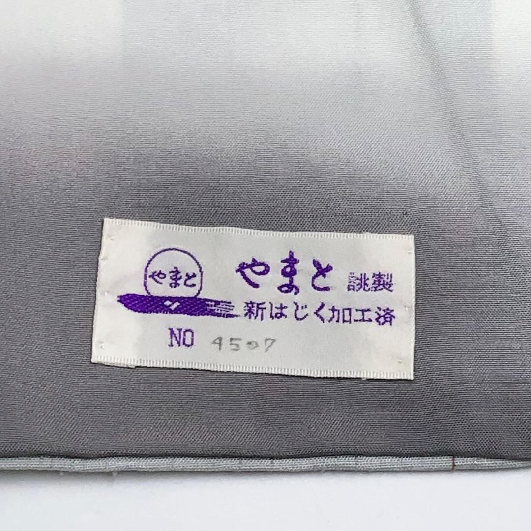 薄鼠水色の上品なお色味のぜんまい紬に染柄の浜辺に縁起の良い可愛らしい小さな海亀の柄裄がデザインされた雰囲気の良い素敵なお品でございます。