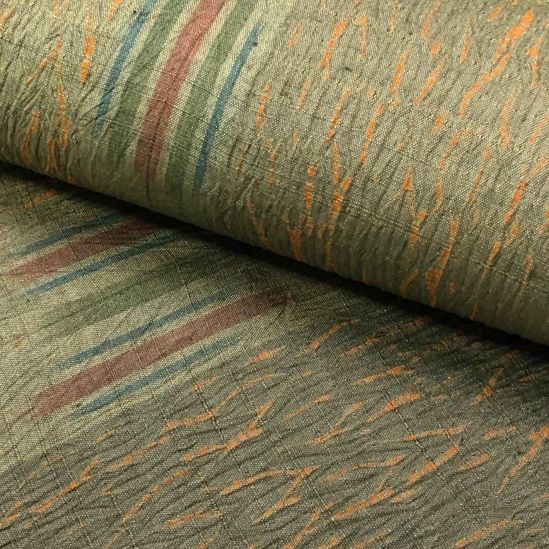 根岸色の味わいのある色彩、縦柄の織模様がデザインされた雰囲気の良い素敵なお品でございます。
