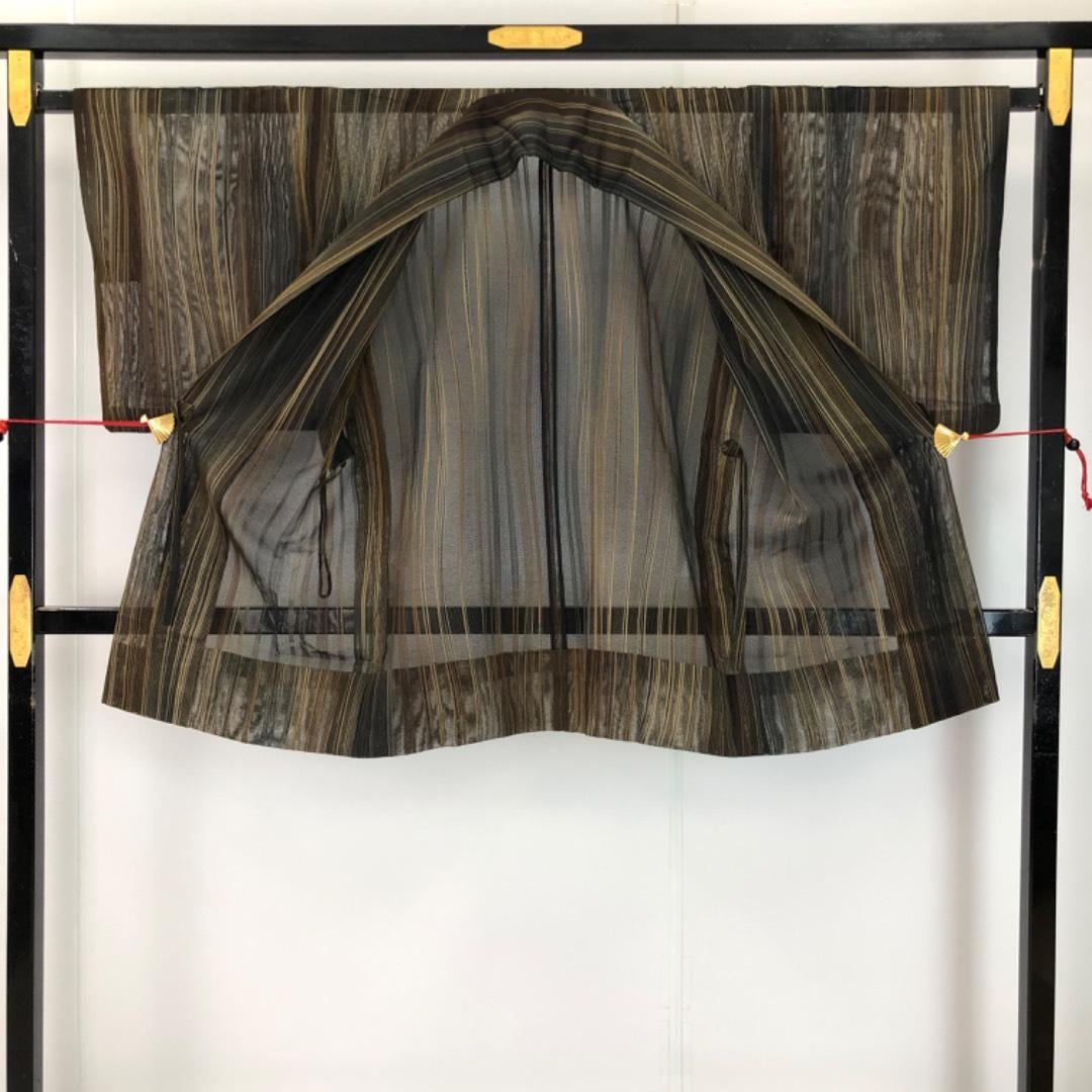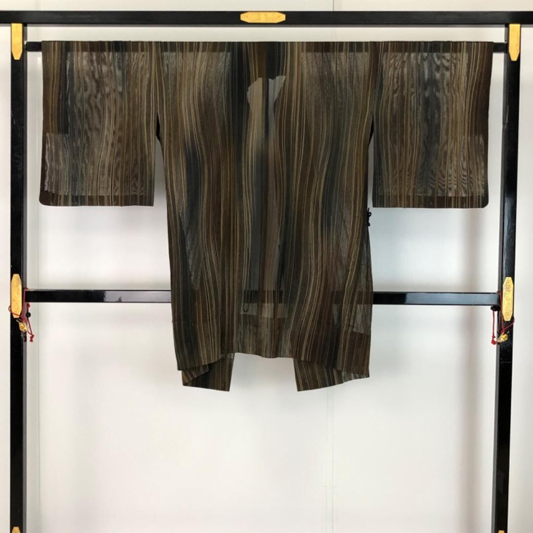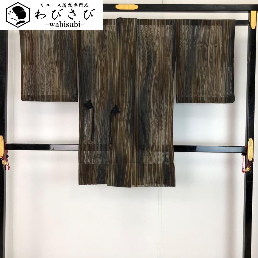 道中着 夏物 縦縞模様 黒茶色 H-4130 着物 きもの kimono 和服 和装 中古 リサイクル着物 【送料無料】
