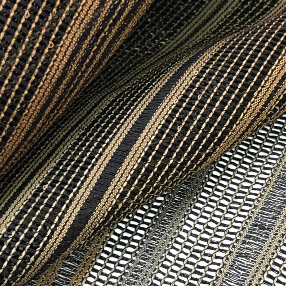 黒茶色ベースのお色味に縦縞模様がデザインされた雰囲気の良い素敵なお品でございます。