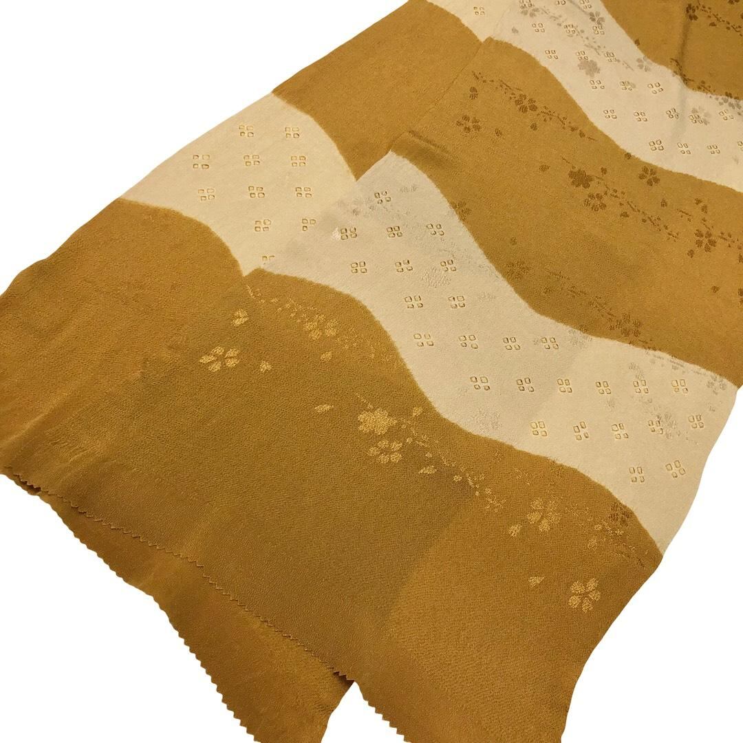 和装小物 帯揚げ 正絹 曲線模様に花 縮緬 木蘭色 C-6866 着物 きもの kimono 和服 和装 中古 リサイクル着物 【送料無料】