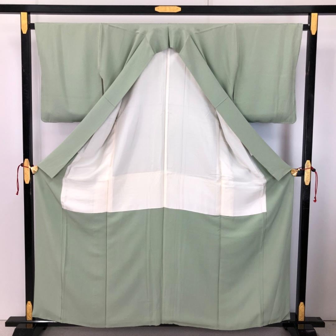 色無地 豆青色 縮緬 しつけ糸 K-5802 着物 きもの kimono 和服 和装 中古 リサイクル着物 【送料無料】
