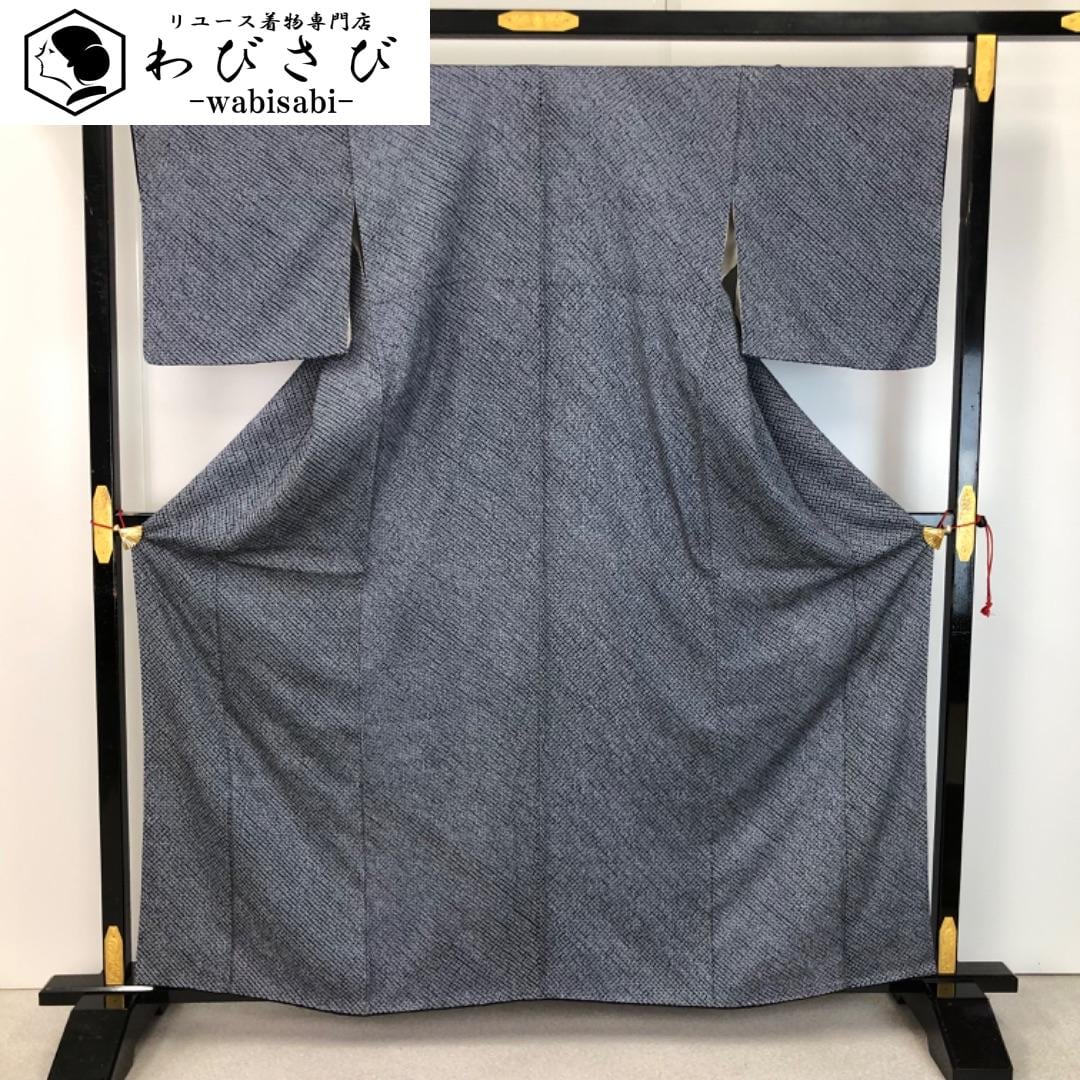 小紋 総絞り 藍染 青褐色 K-5780 着物 きもの kimono 和服 和装 中古 リサイクル着物 【送料無料】
