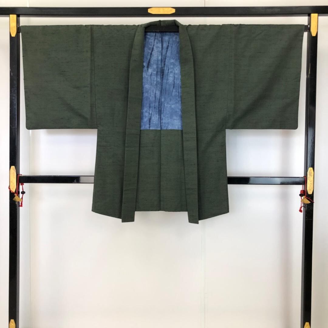 男着物 アンサンブル 紬 鉄深川色 M-1133 着物 きもの kimono 和服 和装 中古 リサイクル着物 【送料無料】