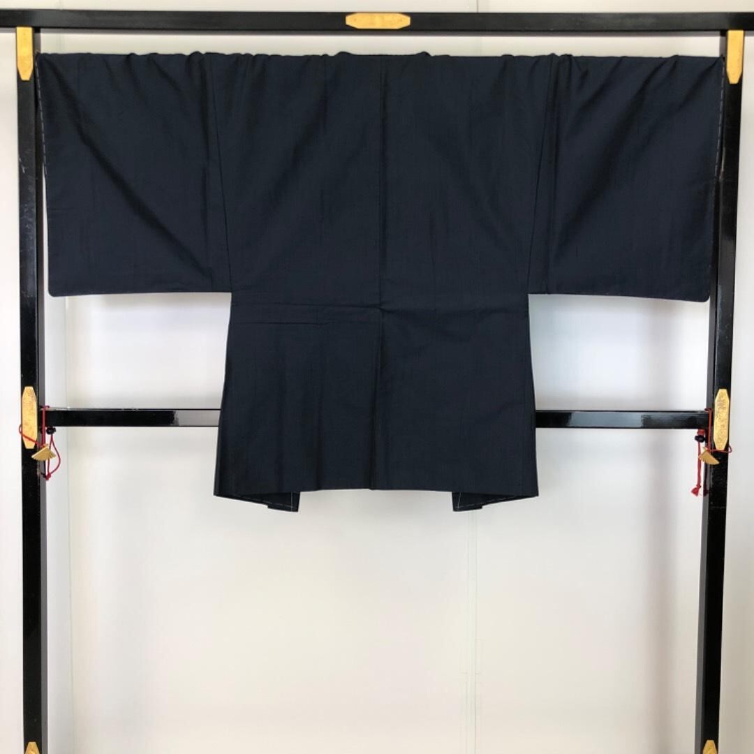 男着物 アンサンブル 紬 龍 紺鉄色 しつけ糸 M-1134 着物 きもの kimono 和服 和装 中古 リサイクル着物 【送料無料】