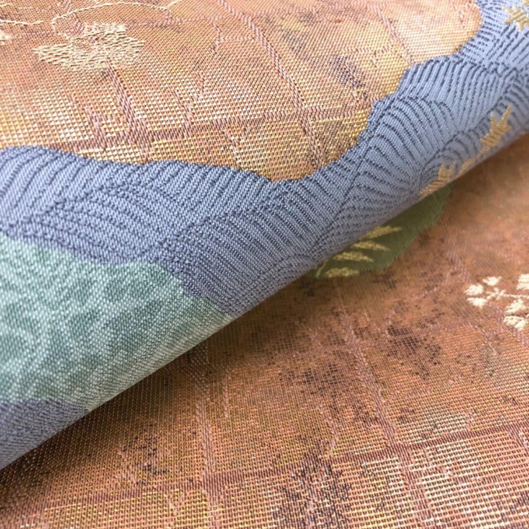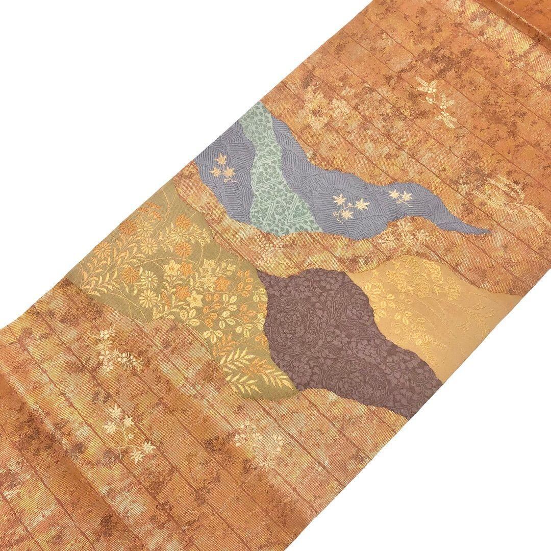 袋帯 道長取り 花唐草模様 花柄 金糸 緋褪色 O-6026 着物 きもの kimono 和服 和装 中古 リサイクル着物 【送料無料】