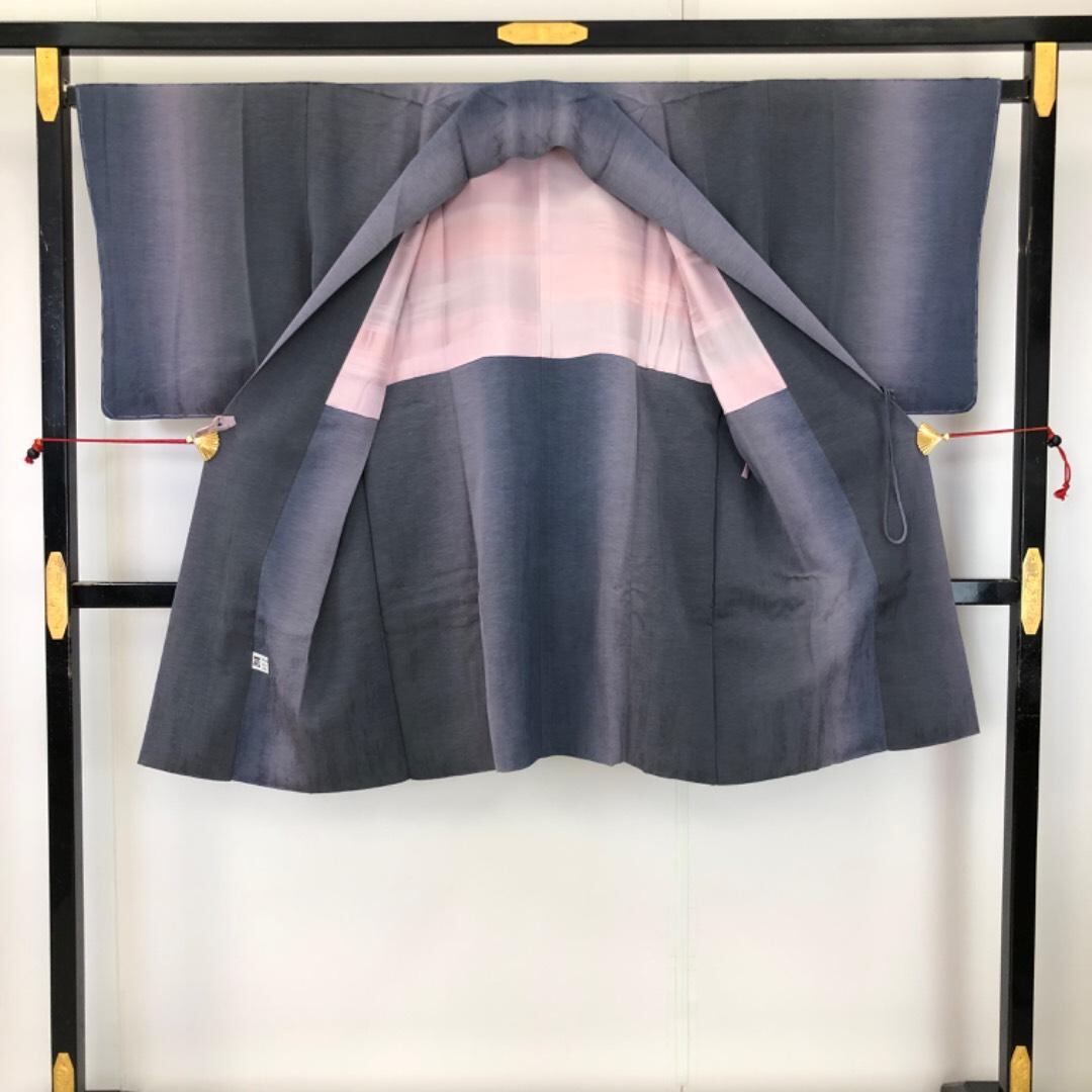 道中着 縦縞 グラデーション 青紫色 ガード加工 しつけ糸 ロング H-4133 着物 きもの kimono 和服 和装 中古 リサイクル着物 【送料無料】