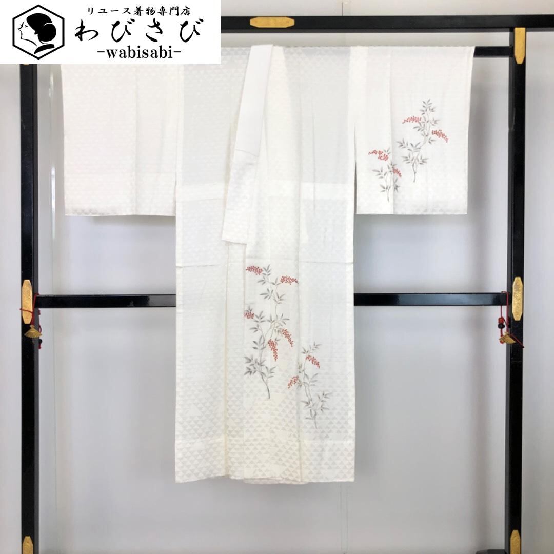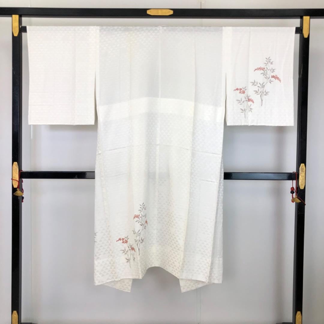 乳白色のお色味に上品な南天の柄裄がデザインされた素敵なお品でございます。