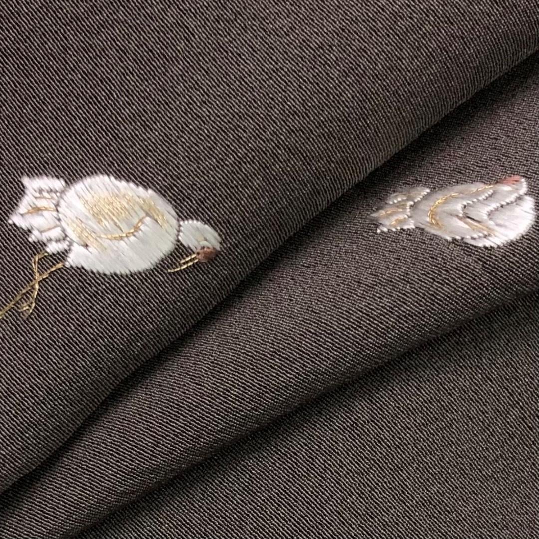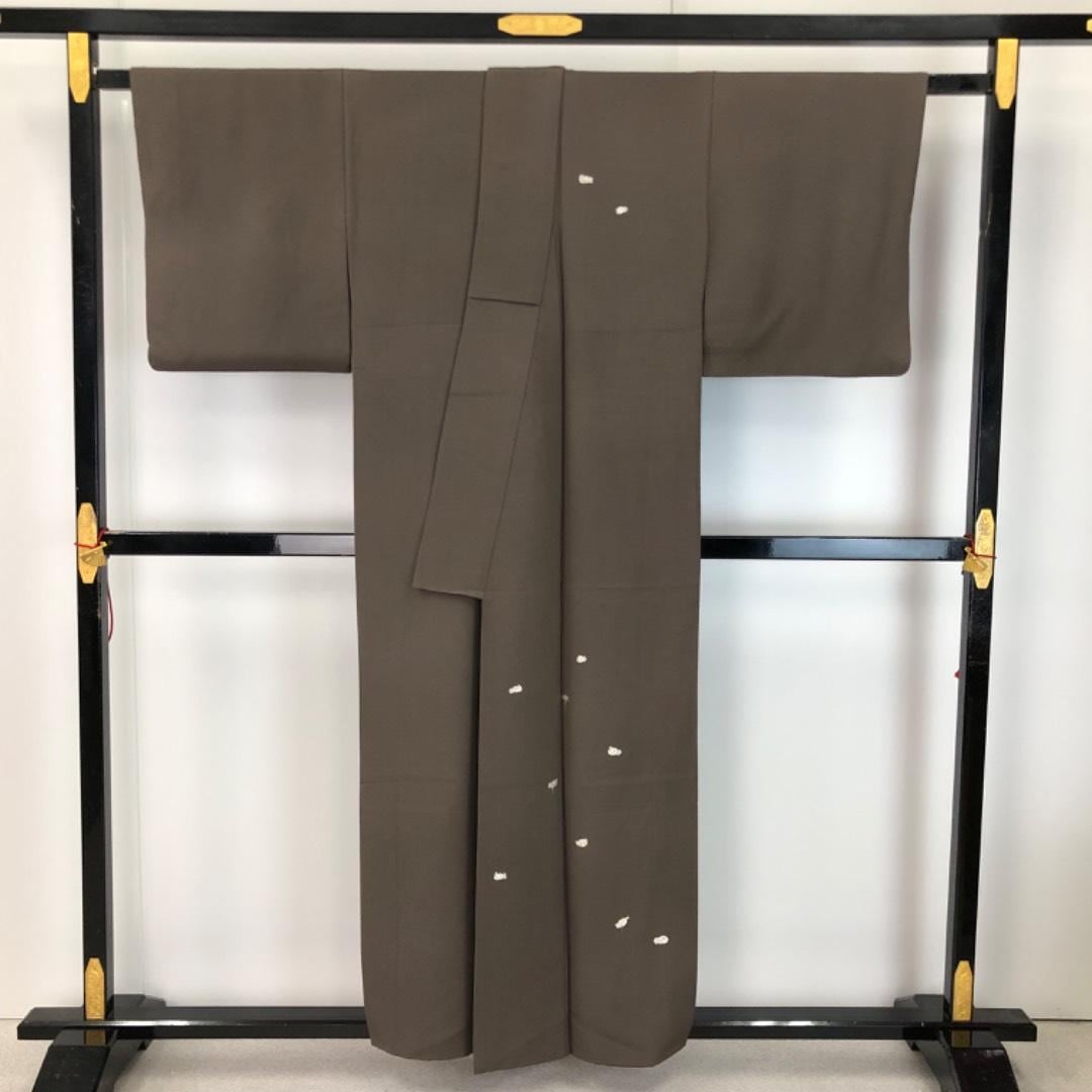 付下げ 鶴 刺繍 金糸 茶気鼠色 縮緬 K-5804 着物 きもの kimono 和服 和装 中古 リサイクル着物 【送料無料】