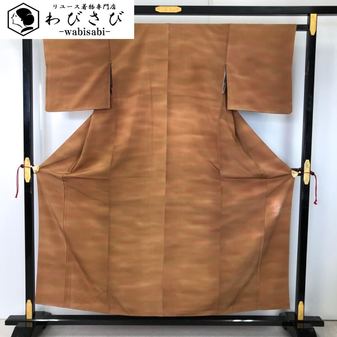色無地 本郷大田子 暈し 古銅色 縮緬 K-5827 着物 きもの kimono 和服 和装 中古 リサイクル着物 【送料無料】