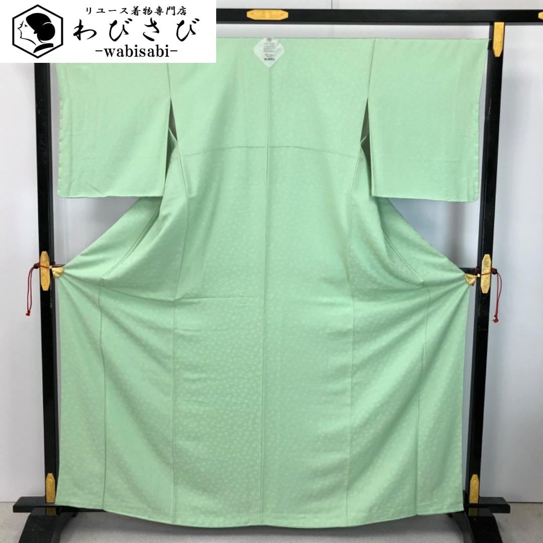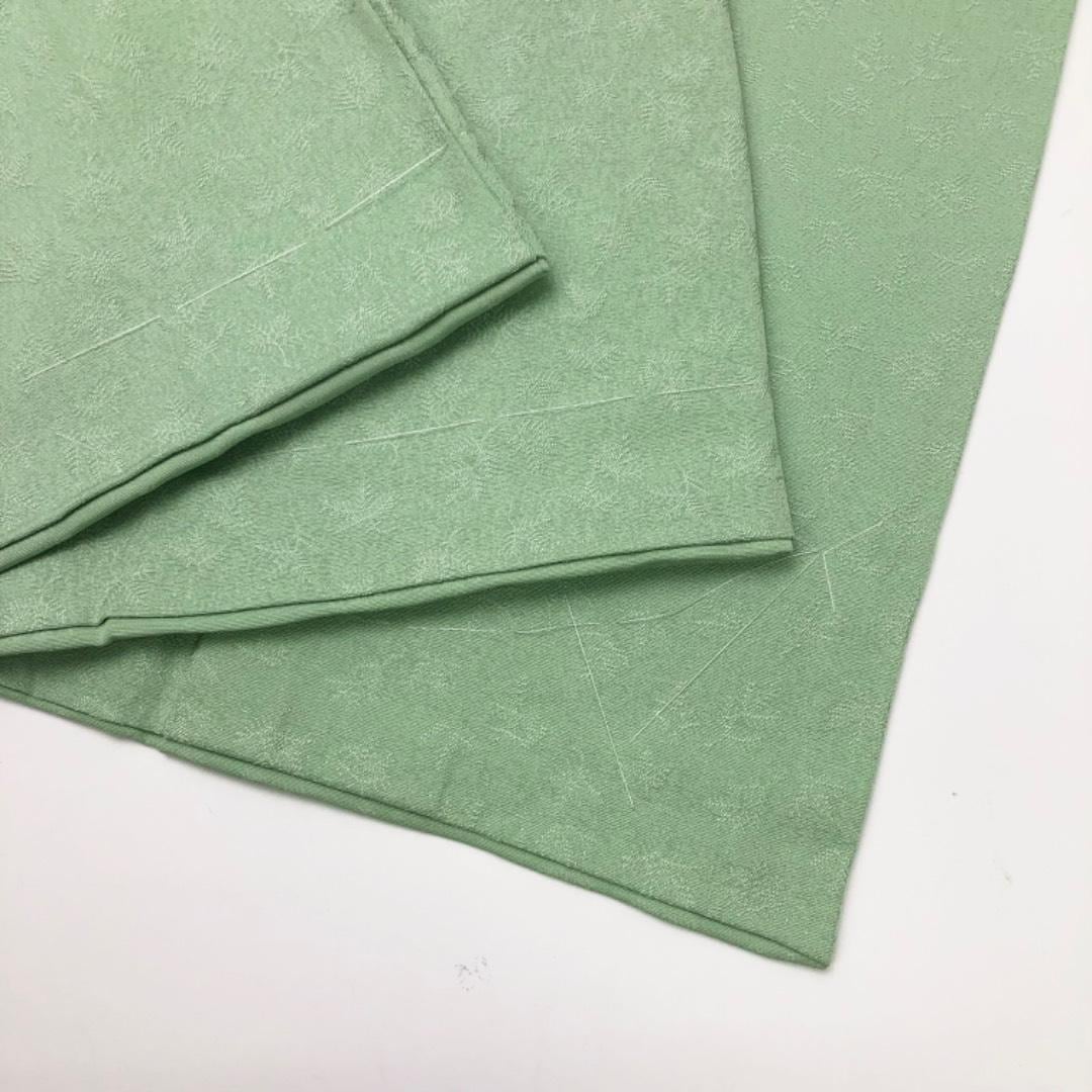 色無地 若緑色 葉っぱ柄地模様 しつけ糸 K-5823 着物 きもの kimono 和服 和装 中古 リサイクル着物 【送料無料】