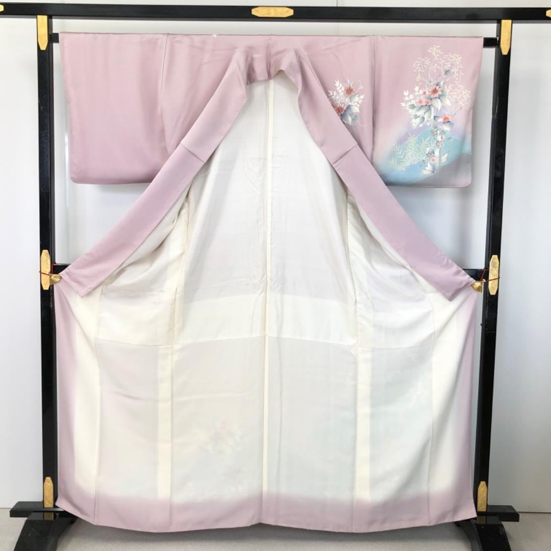 訪問着 美しい花模様 白梅色 染分け K-5831 着物 きもの kimono 和服 和装 中古 リサイクル着物 【送料無料】