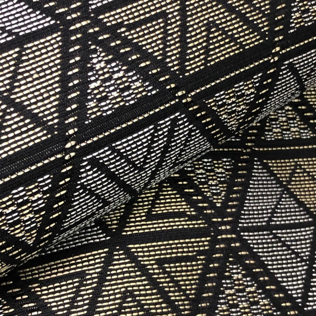 落ち着いたお色味、モダンな幾何学柄の織模様がデザインされた雰囲気の良い素敵なお品でございます。
