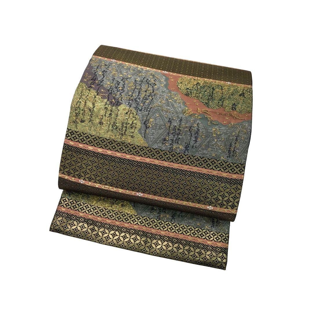 袋帯 三十六歌仙集 七宝柄に菱形 金糸 O-6028 着物 きもの kimono 和服 和装 中古 リサイクル着物 【送料無料】