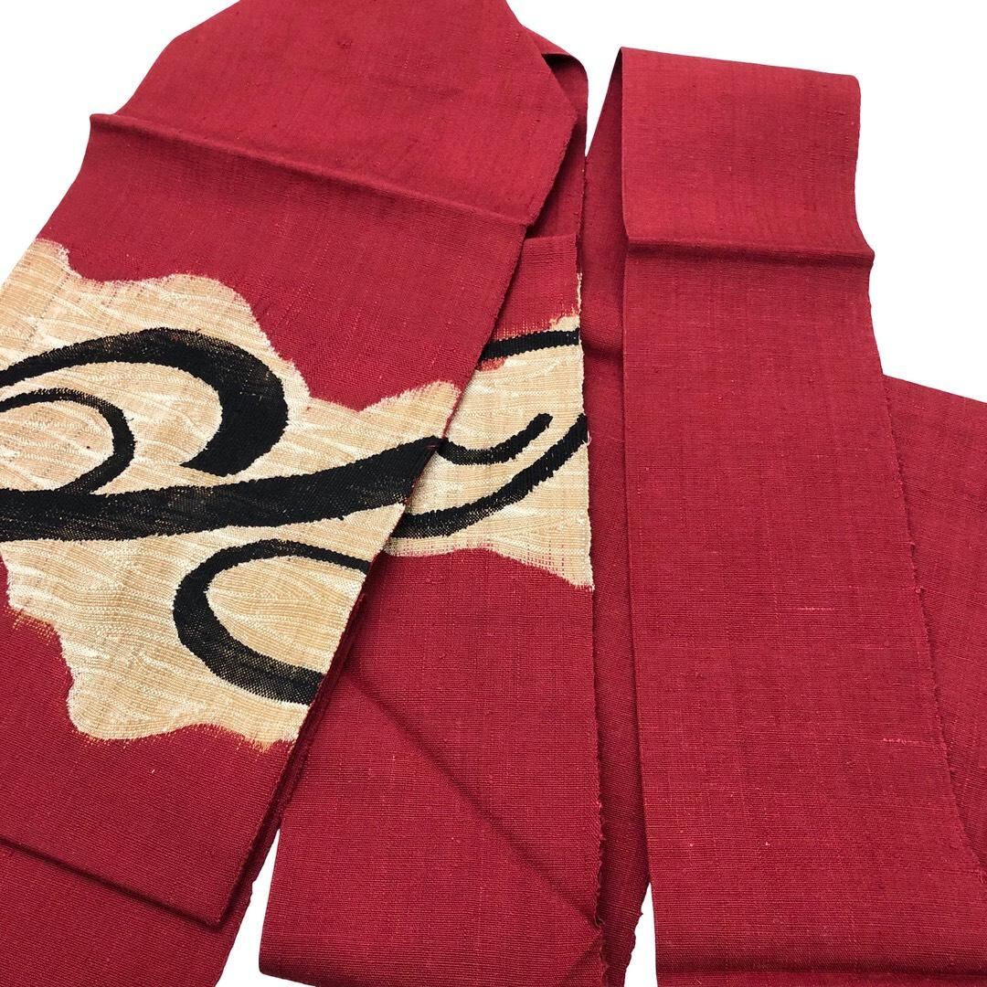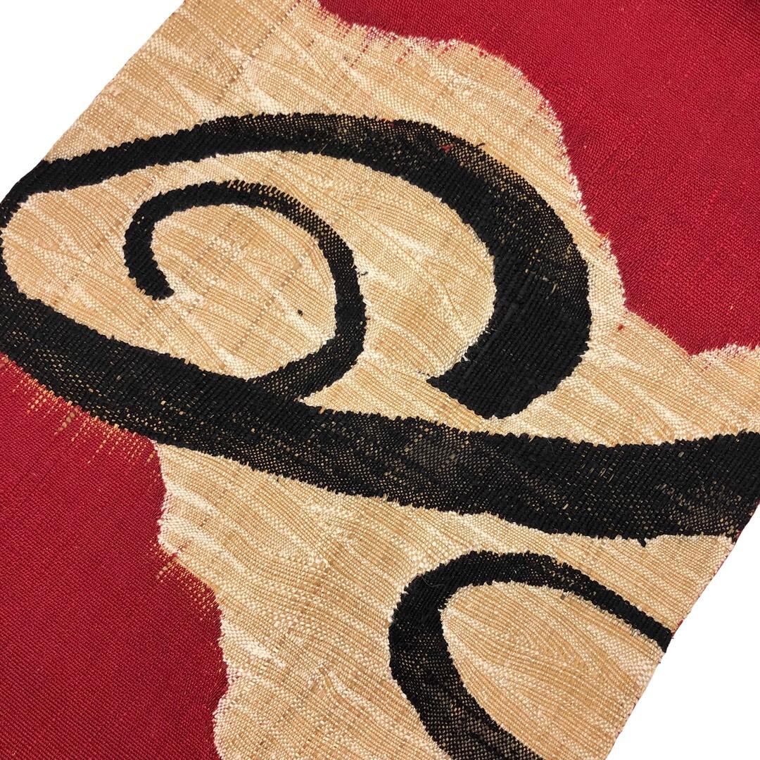名古屋帯 真綿紬 抽象模様 生臙脂色 O-6081 着物 きもの kimono 和服 和装 中古 リサイクル着物 【送料無料】